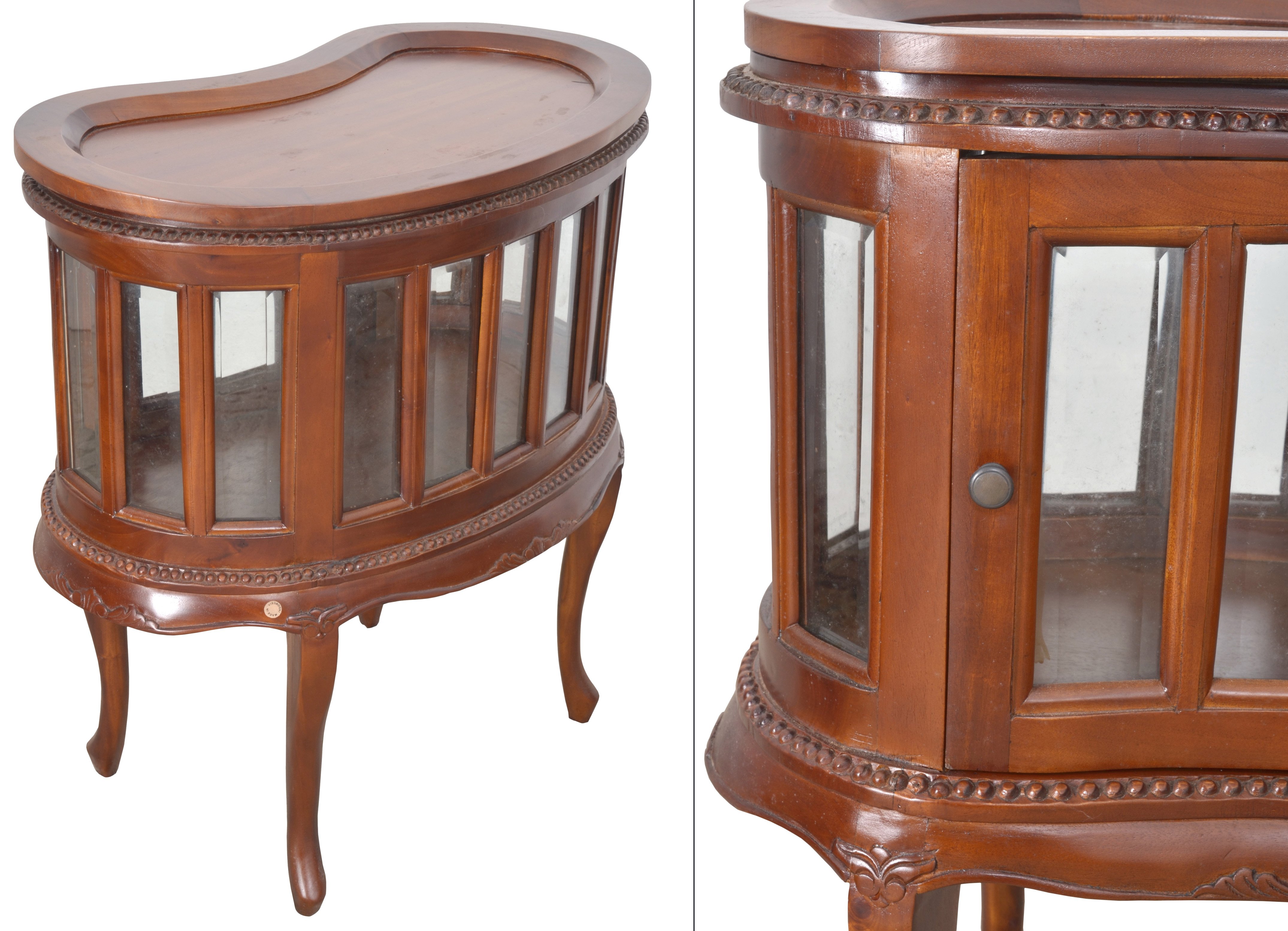 The Kidney Chocolate Table is more than just furniture; it is a nod to 19th-century European design. Whether used to display fine China, heirlooms, or as a unique bar cabinet, its blend of beveled glass and hand-carved mahogany brings an air of refined history to your living space