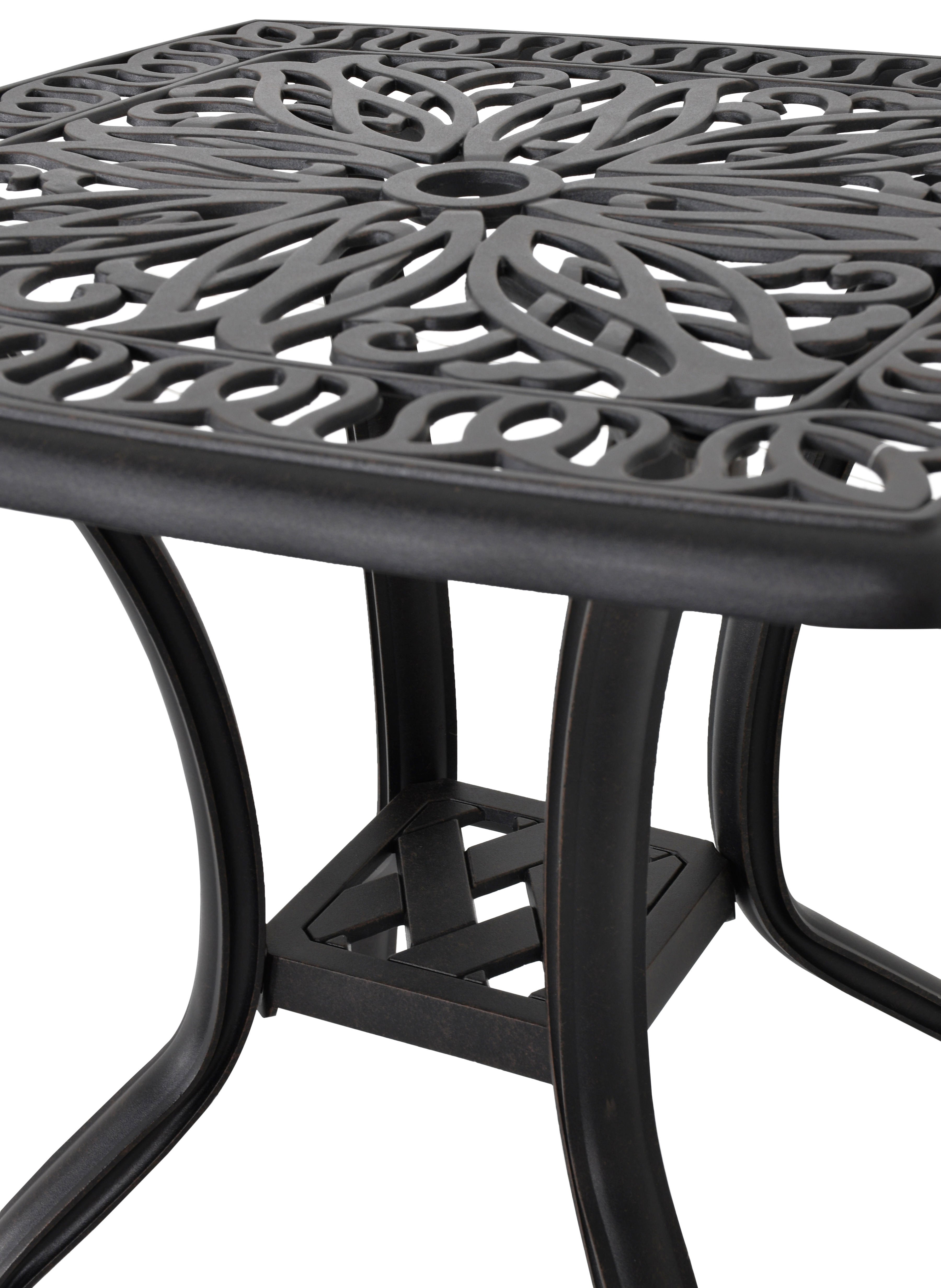Elevate your patio or garden with the sophisticated Grand Bonaire Weave Side Table. A standout piece from the Bridgeton Moore Grand Bonaire Collection, this table blends classical scrolling elements with modern craftsmanship. Whether you are resting a morning coffee or displaying outdoor decor, its rich bronzed finish and intricate hand-woven details bring a touch of timeless luxury to any seating arrangement.