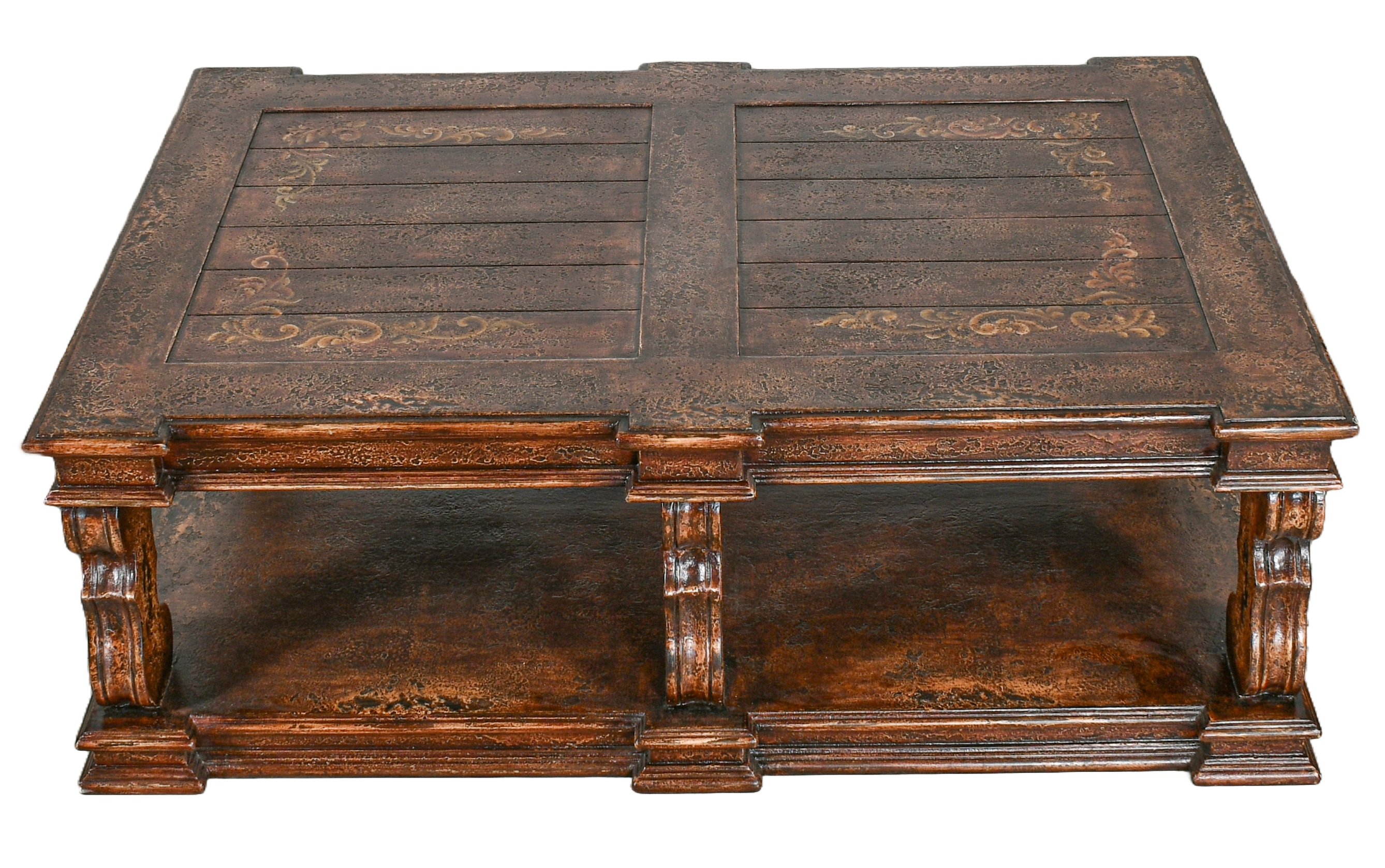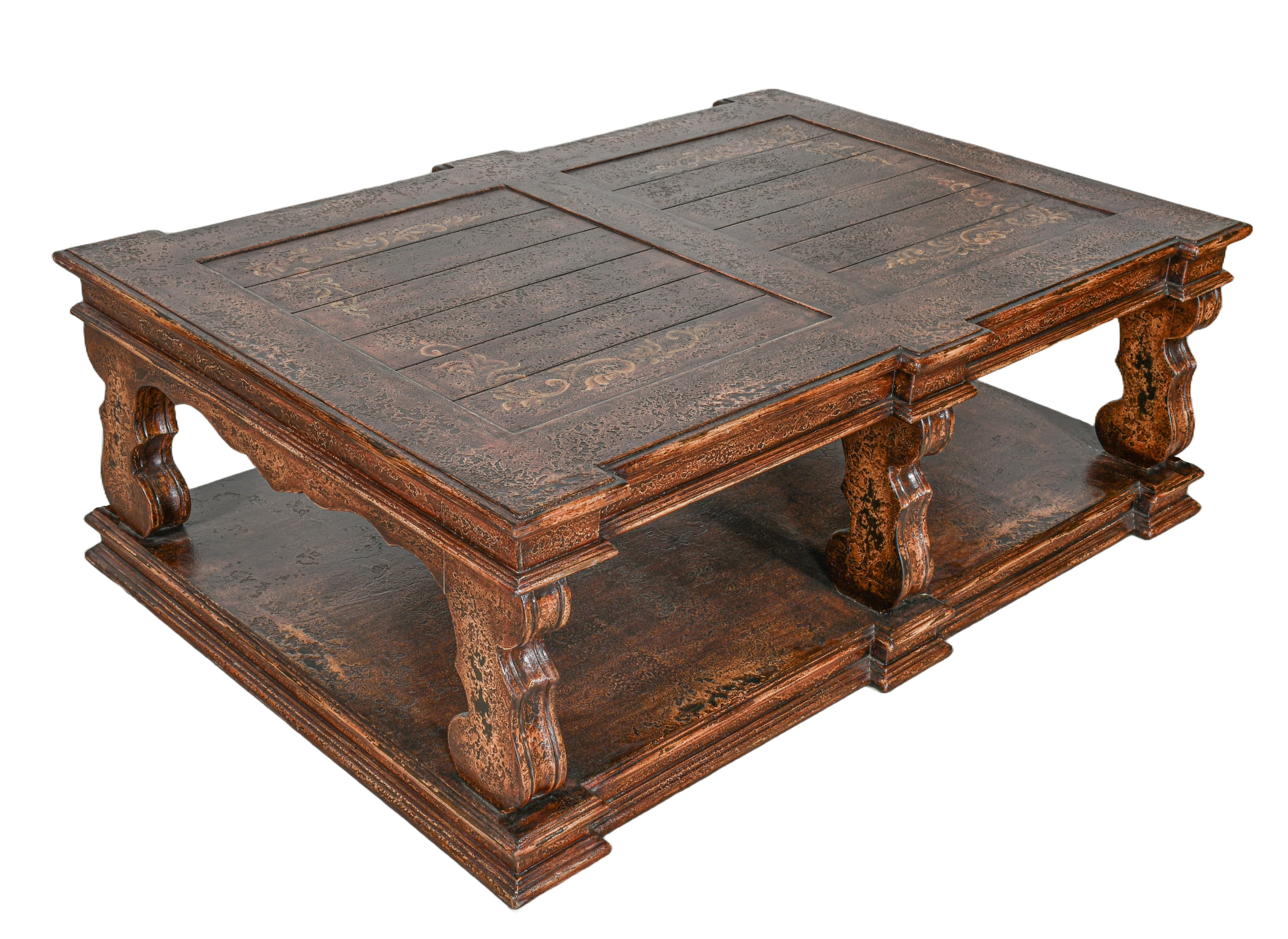 • Finish: Multi-layered Sienna & Brown with hand-painted scrolls