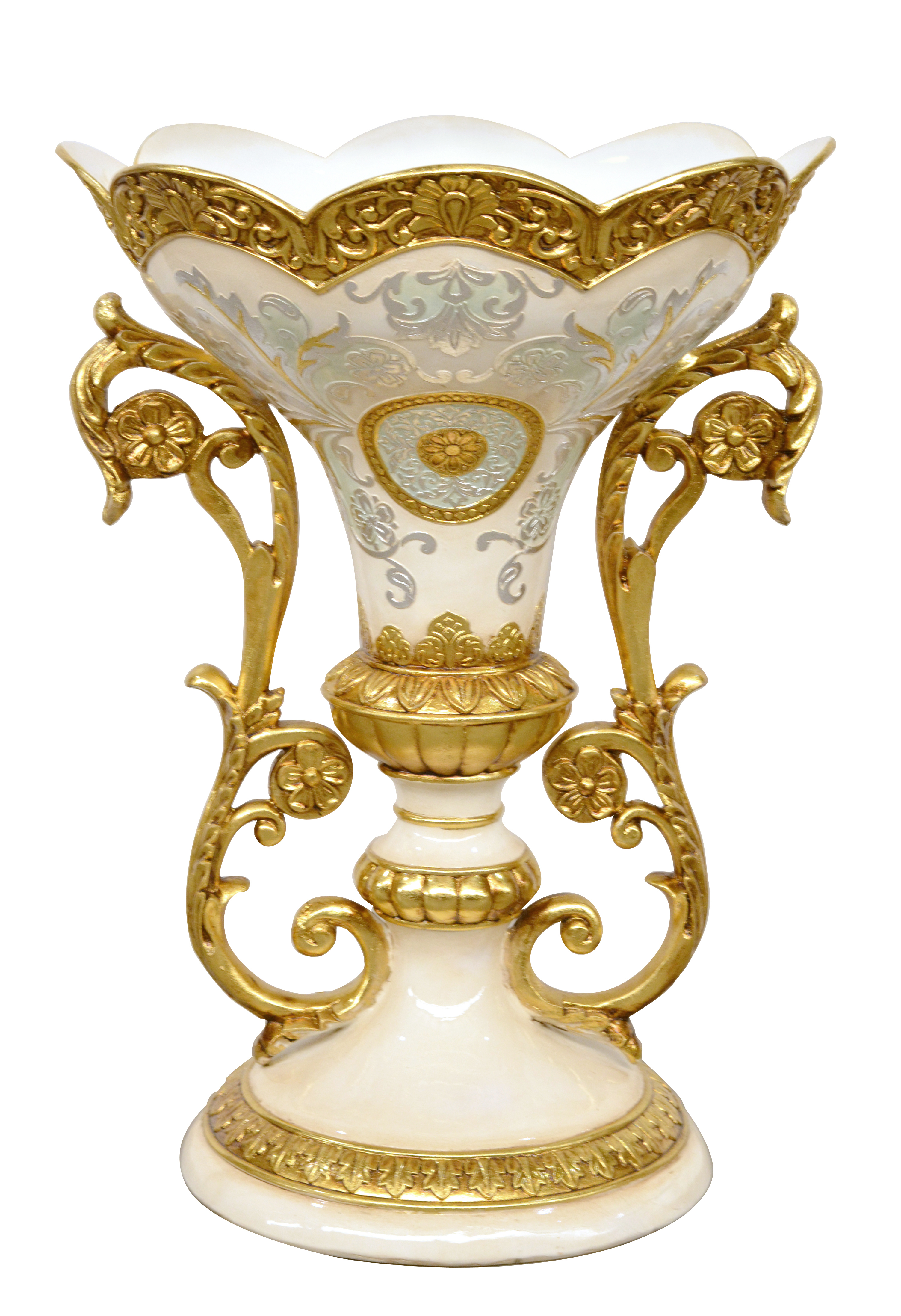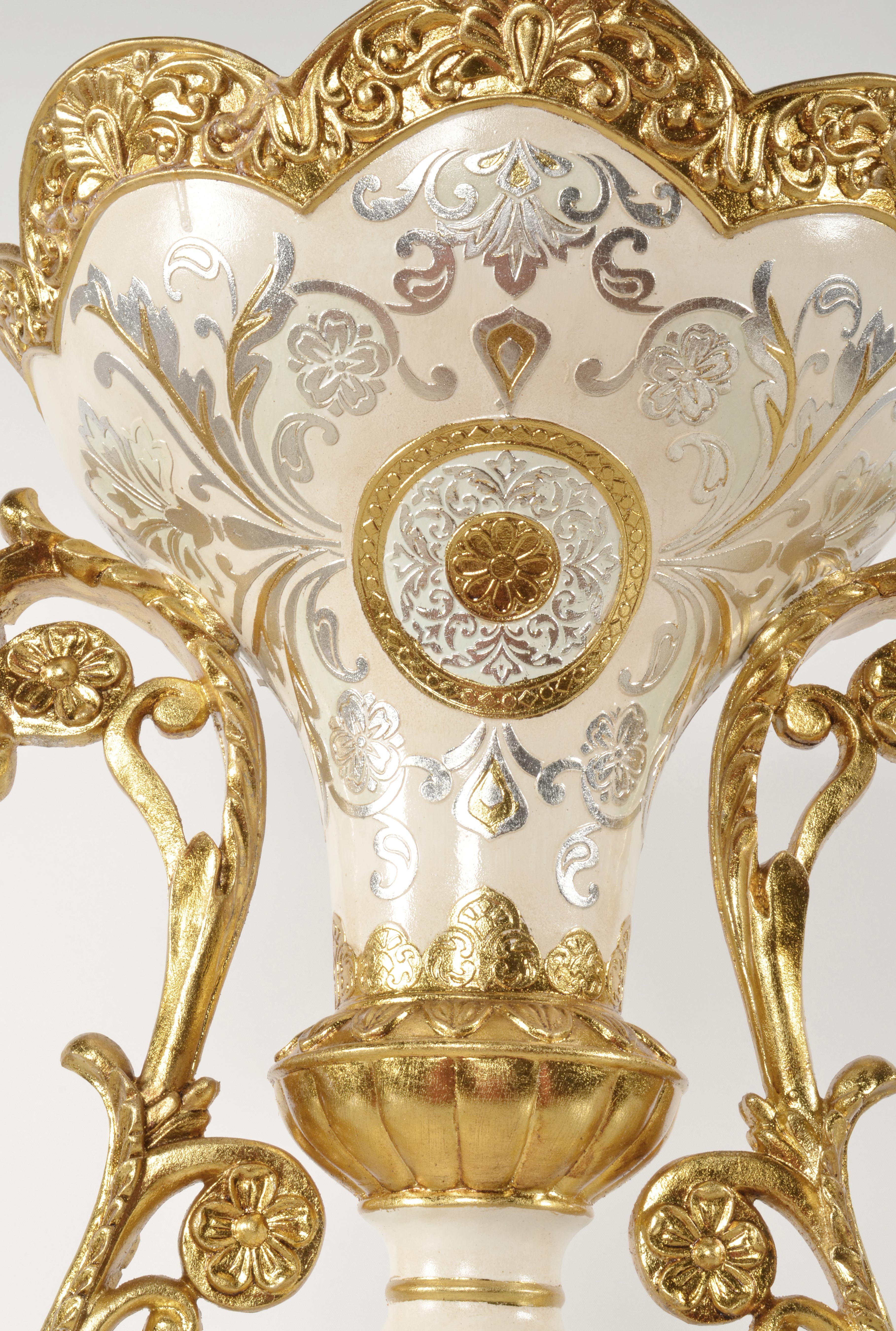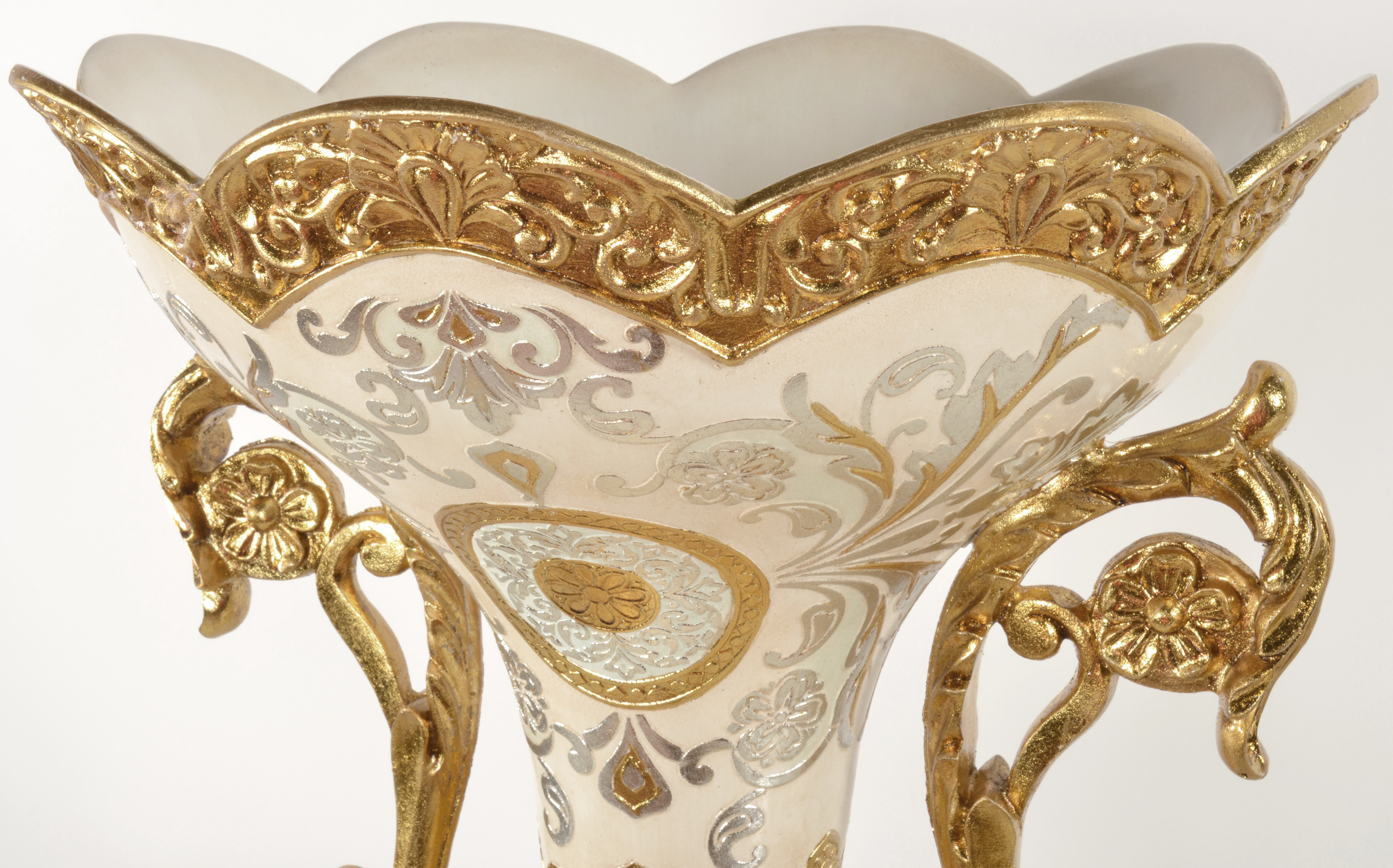 Part of our stunning Celine Collection, this Presentation Urn on Pedestal embodies timeless, traditional design and elegant craftsmanship. Its commanding presence makes it an exceptional focal point, whether serving as a sophisticated centerpiece for a lavish floral arrangement or standing alone as a magnificent decorative object. The classic silhouette is enhanced by the meticulous hand-finishing, which offers a subtle yet rich contrast of white, soft blue, shimmering silver, and warm gold. Elevate your home, event, or gallery space with this piece of enduring beauty.