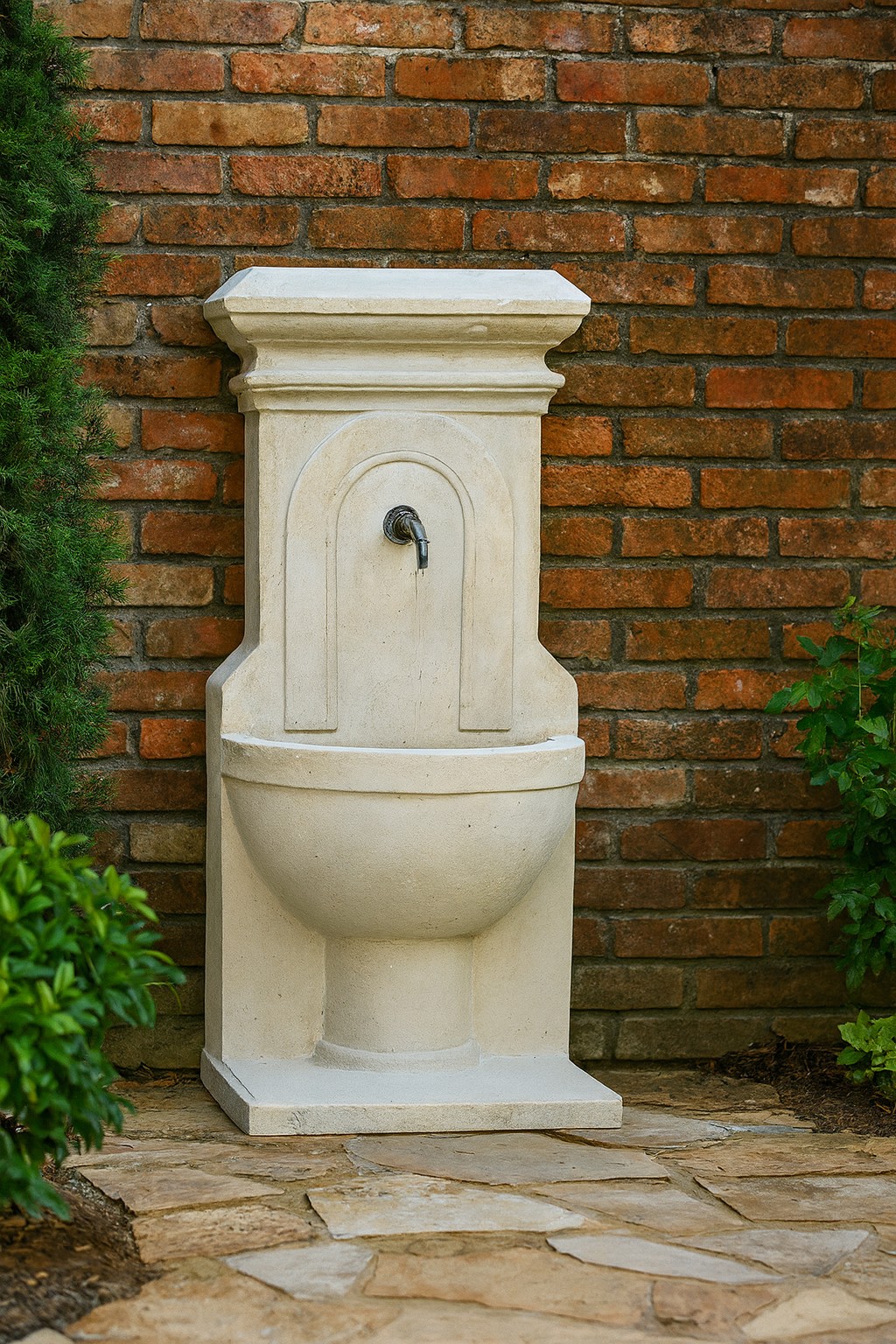 Bring timeless elegance and soothing ambiance to your space with the Sienna Fountain, a beautifully crafted freestanding water feature designed to elevate gardens, courtyards, patios, and entryways. This tall fountain makes a commanding statement while maintaining classic charm. Its clean architectural lines, bowl basin, and antique style spout create a luxurious focal point that blends seamlessly with traditional or contemporary settings. Perfect for both residential and commercial use, the Sienna Fountain not only enhances décor but also brings the relaxing sound of gently cascading water to your environment.