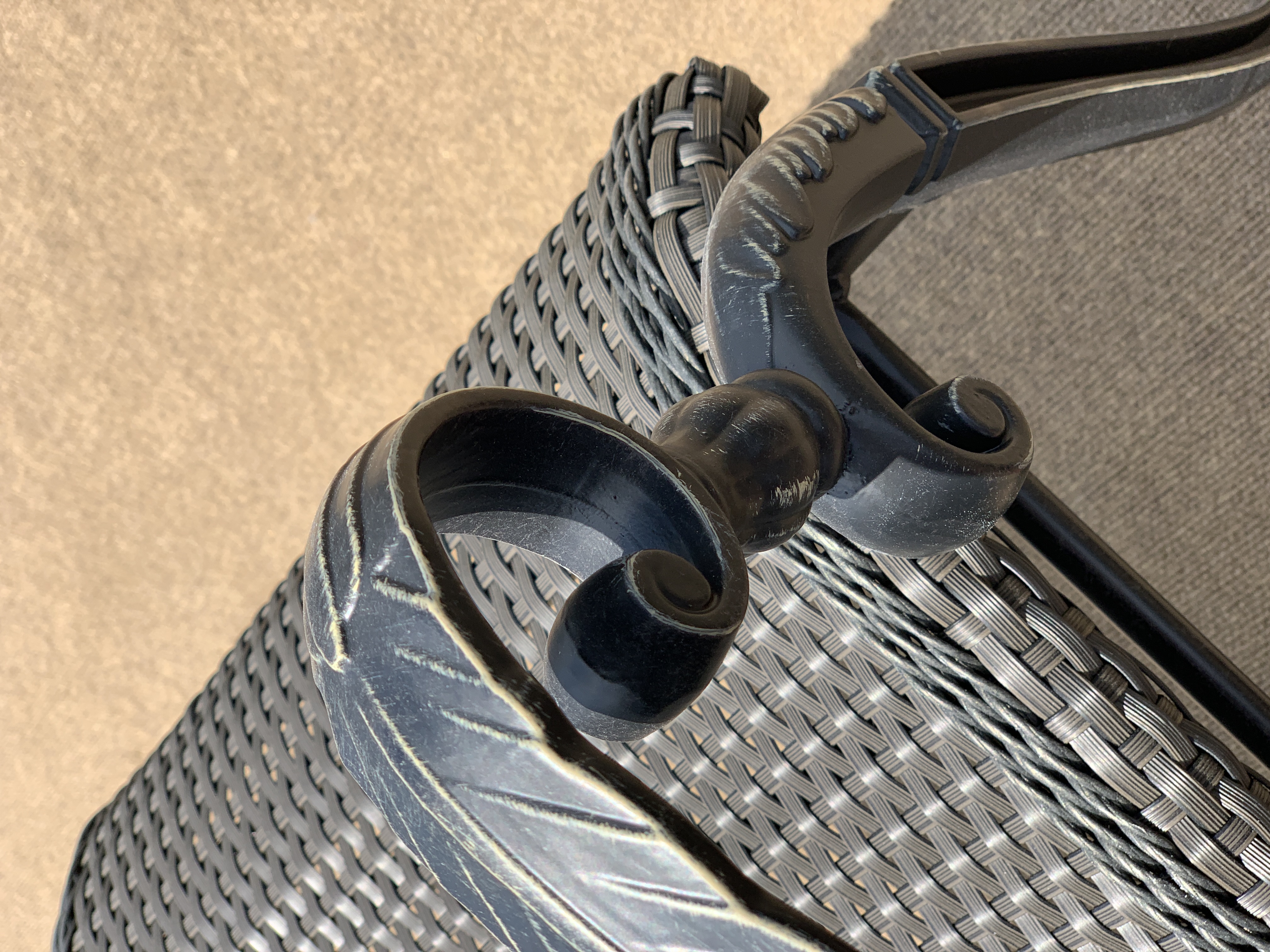The Wyndemere Outdoor High Back Dining Chair, has a rich ebony black finish with hand-applied silvery white accents, enhancing its aesthetic appeal. The shapely contoured back, intricately woven in a unique pattern with all-weather UV and Split Resistant poly wicker weave, not only adds to its fashionable appearance but also ensures unparalleled comfort. Sold separately, this dining chair is versatile enough to serve as an outdoor bistro seat or be paired with either of the Wyndemere Dining tables, available in large oval or round shapes, for a complete dining set. Crafted from 100% aluminum, these chairs are built to last and will never rust. Fully welded prior to finishing, they epitomize Bridgeton Moore's commitment to quality, with no assembly required. Constructed using the best manufacturing techniques, Bridgeton Moore sets high brand quality standards, offering a 3-year warranty on all frames and finishes under normal conditions. covers are recommended for year-round outdoor exposure and regular cleaning of the surface to remove debris. Enjoy the ultimate dining experience with the Wyndemere Outdoor High Back Dining Chair, where style, comfort, and durability converge seamlessly