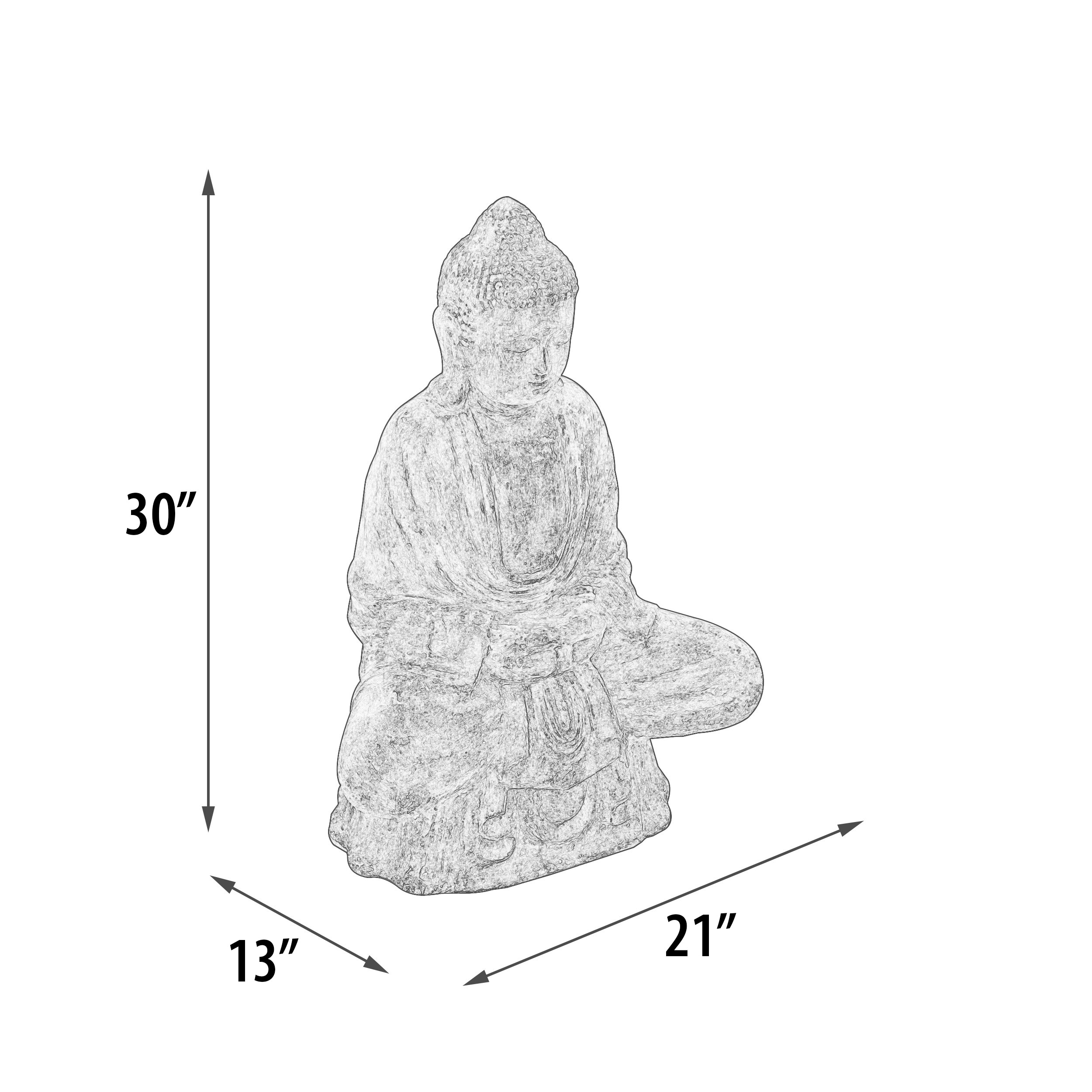 Hand cast in a durable fiberglass and cast stone reinforce material this classic buddha sitting in lotus position statue is well made. A large scale sitting 30 inches tall, this buddha statue is suitable for use sitting on the floor or on a large shelf. Each statue is hand finished with a striking Blue Stone Wash Finish. Hand Cast and Hand Finished 1 piece at a time giving each sitting buddha unique variations that add to the authenticity. Buddha 2, 600 years ago he founded a religion that has lasted two and a half millennia Born a prince near the border of Nepal and India. Buddha realized that life's true goal was to achieve lasting happiness through the right nature of mind. For the rest of his life, the Buddha taught and shared, how they too could reach the same state of inner peace. Imported from Indonesia by AFD Home. Finished and manufactured for limited Outdoor or Interior Uses. No Assembly required.