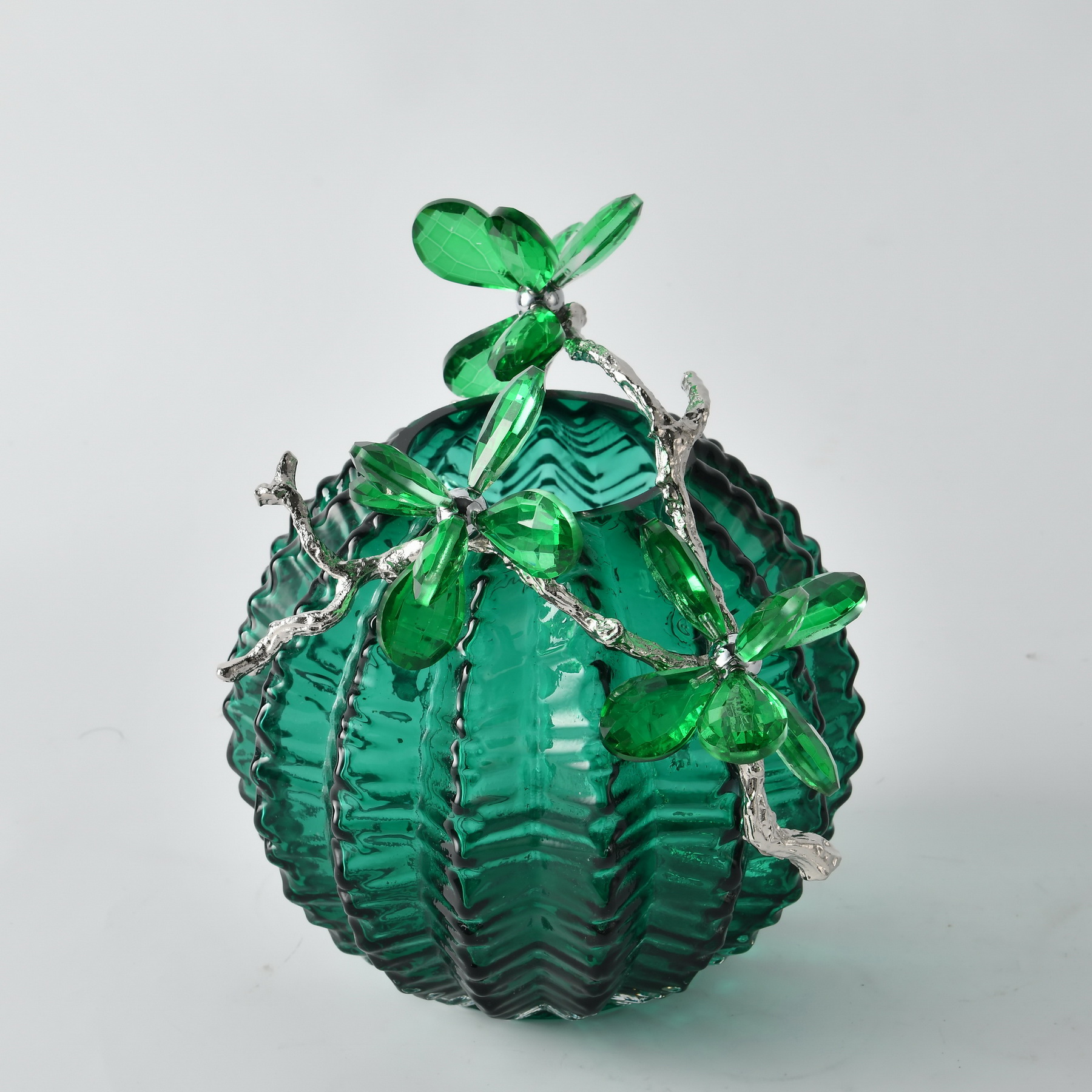 Elevate your home decor with the luxurious charm of the Vibrant Emerald Charm Round Vase. This exquisite decorative piece features a sculptural ribbed design in vibrant emerald green opped with a delicate silver branch adorned with faceted glass leaves and flowers. Combining nature inspired elegance with artisan craftsmanship, this vase is perfect as a centerpiece or a unique gift for design lovers.