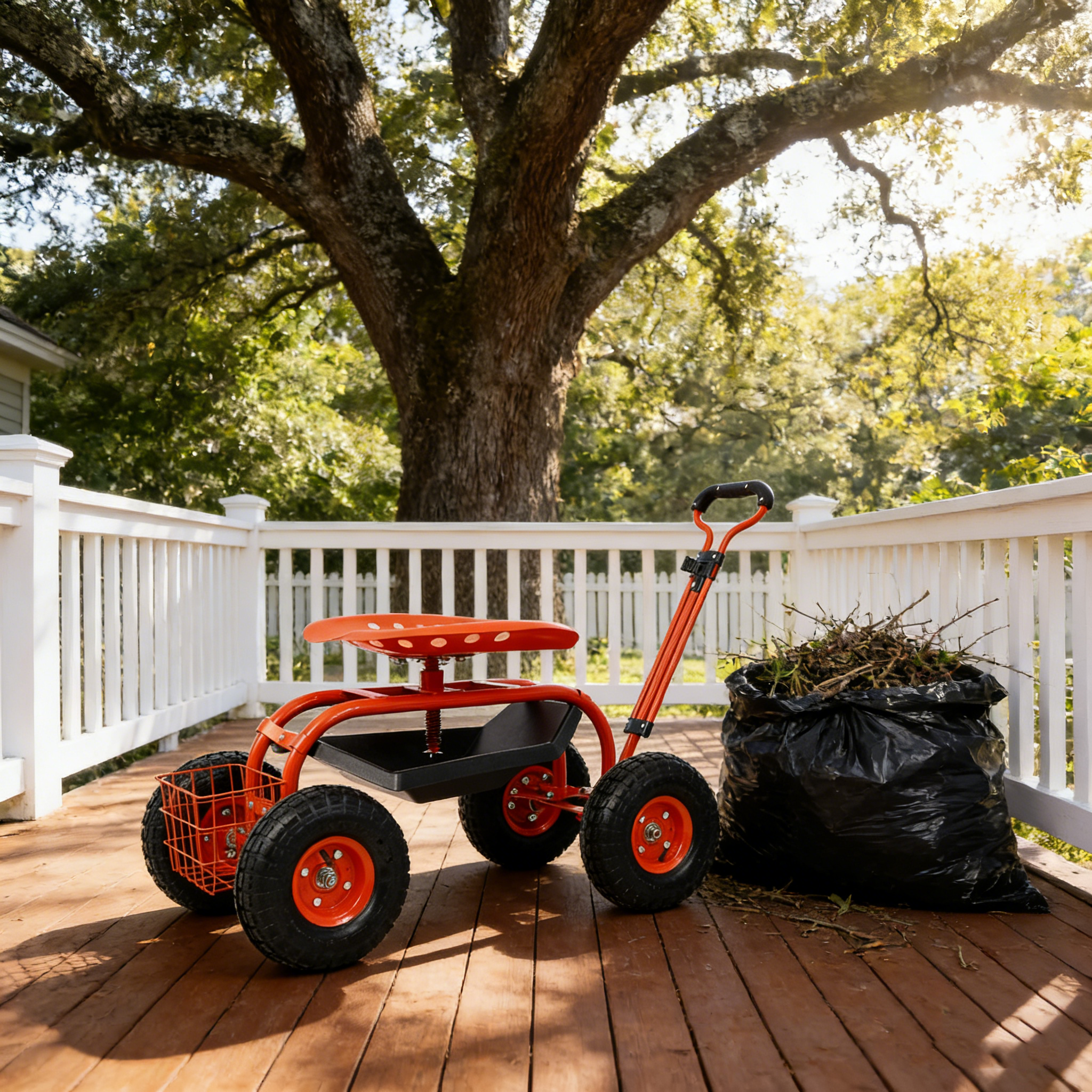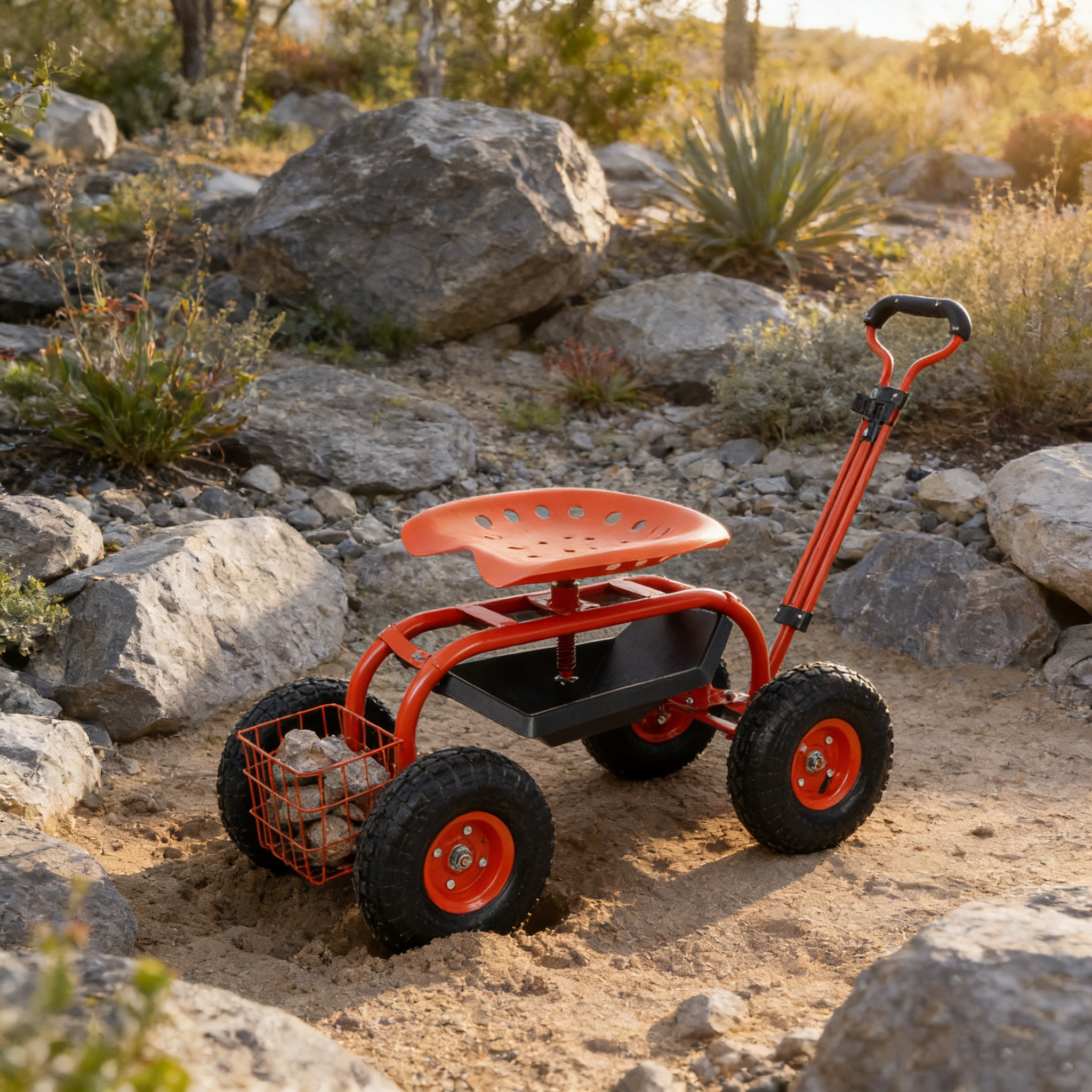 • Comfortable and Ergonomic Design:Our garden cart boasts a comfortable swivel seat that is both height adjustable and provides 360-degree swivel motion. Experience optimal comfort and flexibility during long hours of use. Effortlessly rotate the seat in any direction to access different areas of your garden, making your gardening sessions more enjoyable.