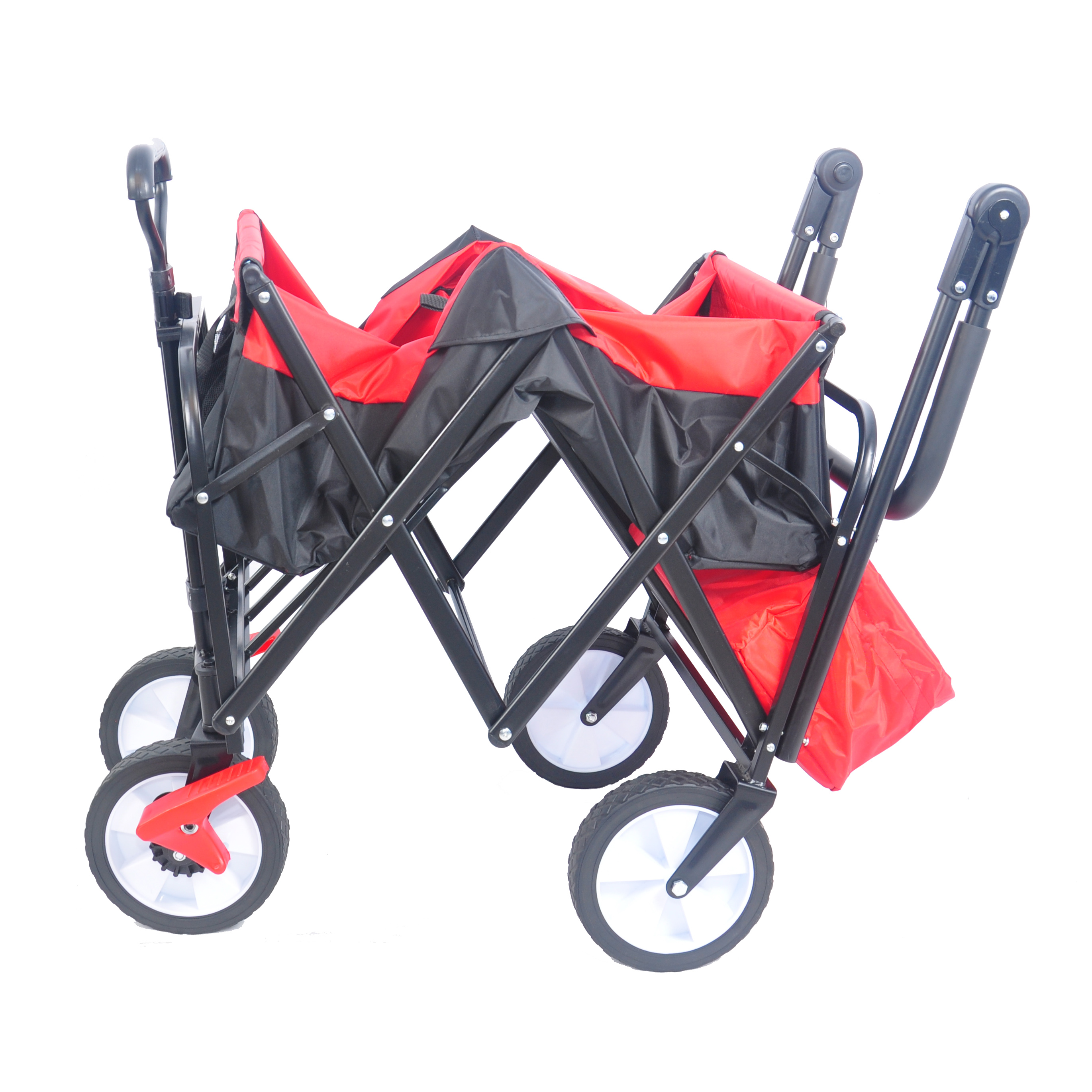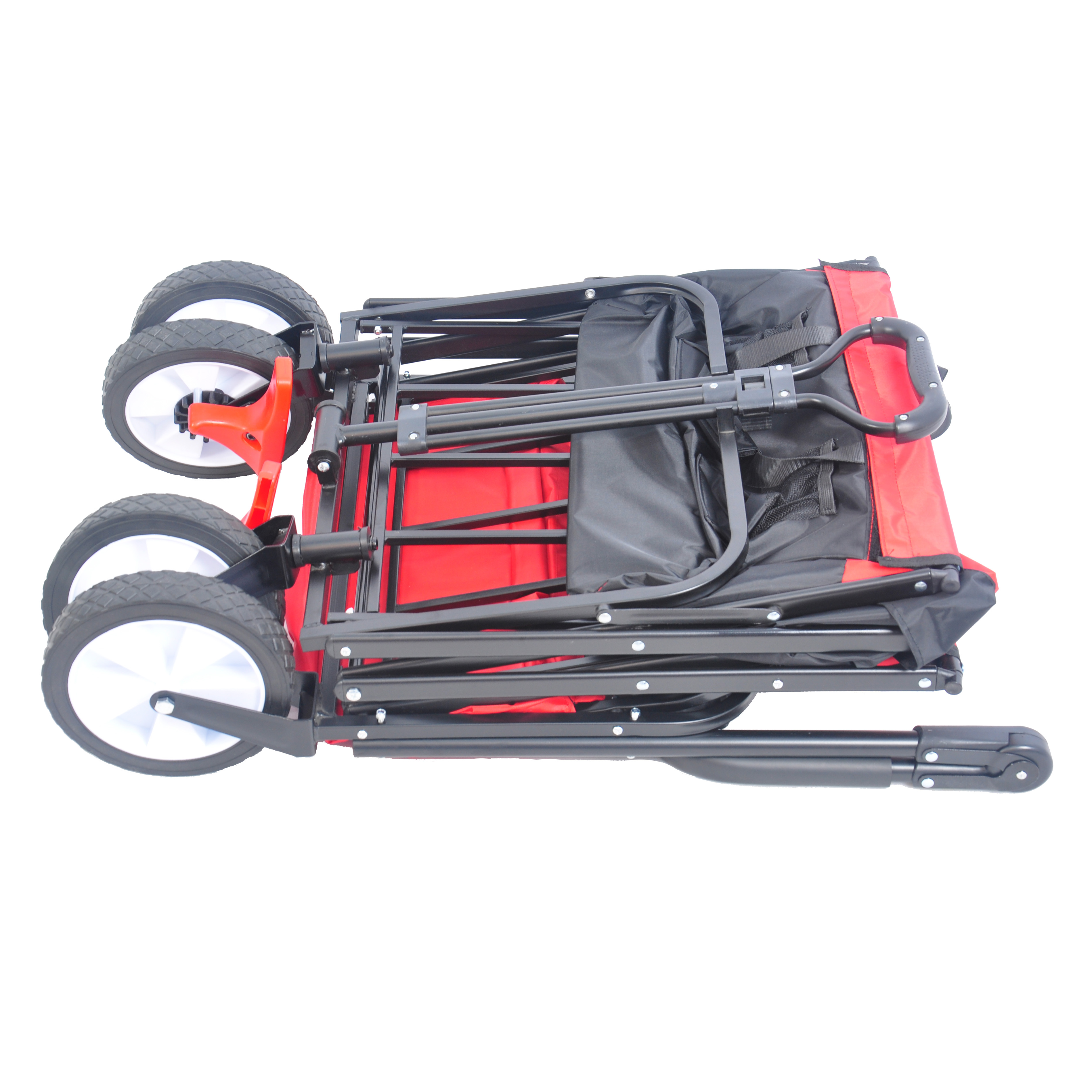Home > Folding Wagon Collapsible Outdoor Utility Wagon, Heavy Duty Folding Garden Portable Hand Cart, Drink Holder, Adjustable Handles Black Red Colour
