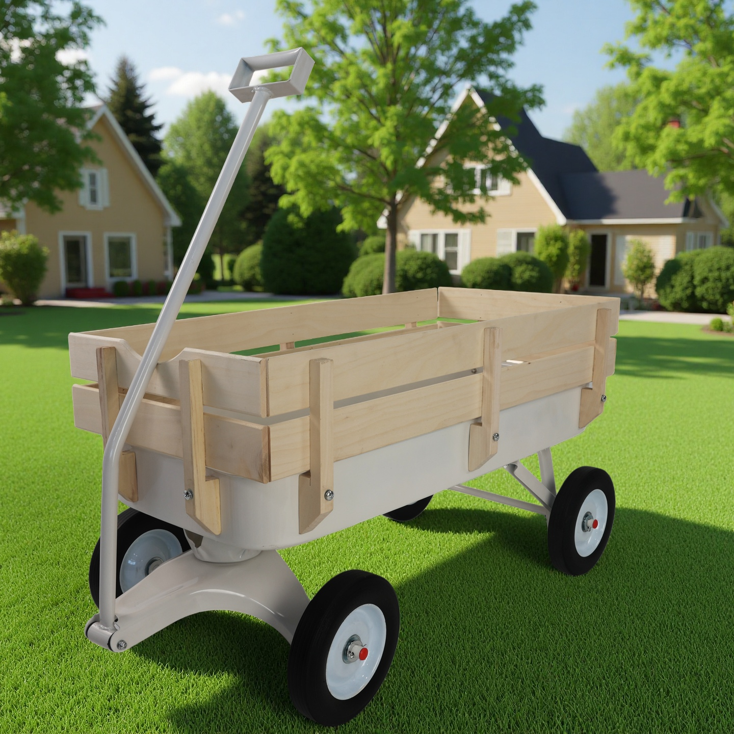 Outdoor Carriage, All Terrains, Wooden Railings, Solid Tires, Garden Carriage,Load-bearing Capacity176LBS