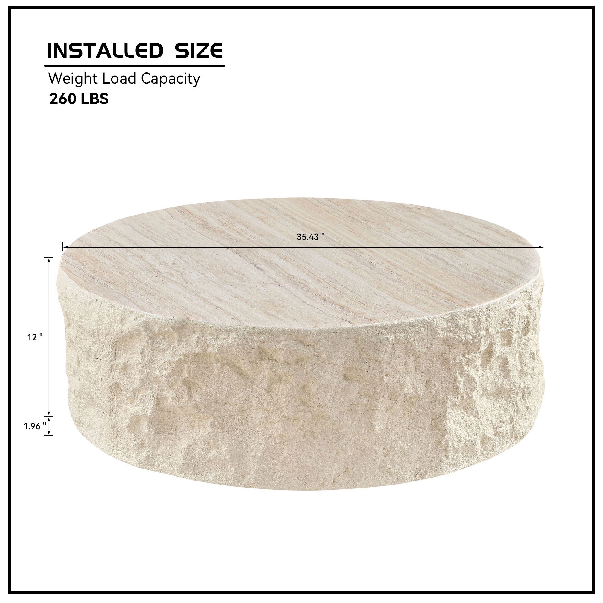 Product Name:35.43''Fiberglass Round Center Coffee Table for Living Room Vintage Table,Imitation Stone Table front of the Sofa,Modern Design Coffee Table for Office,Apartment,No Need Assembly