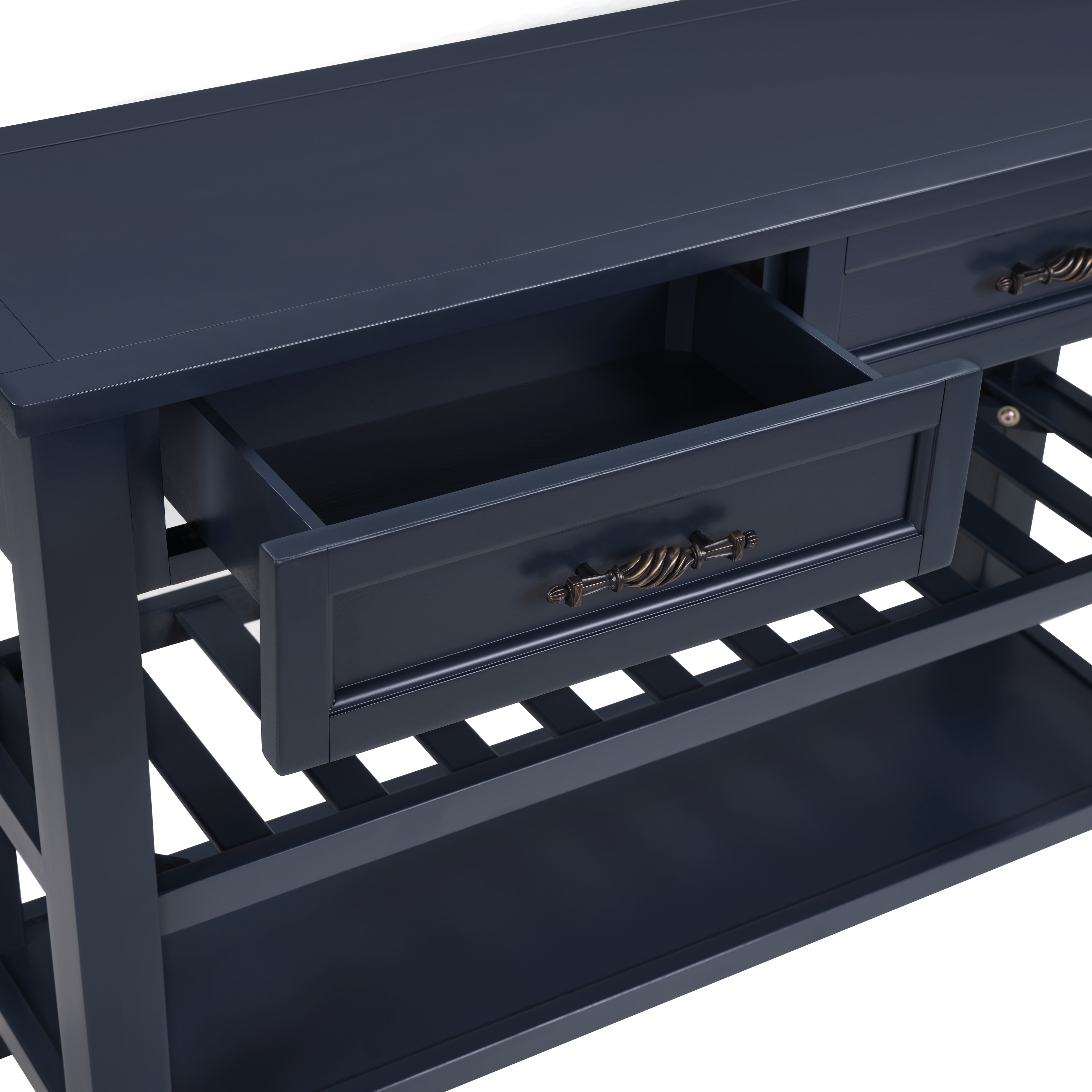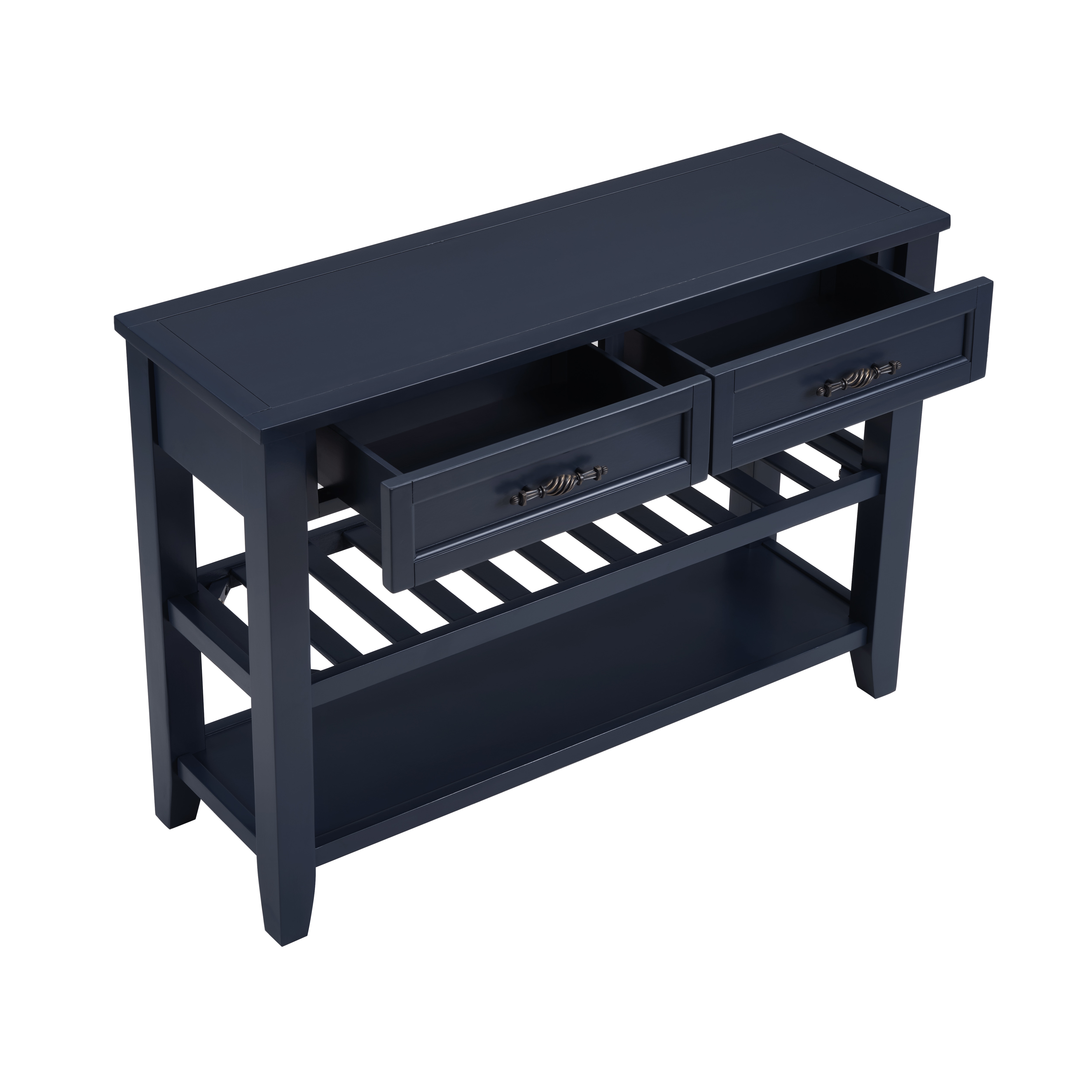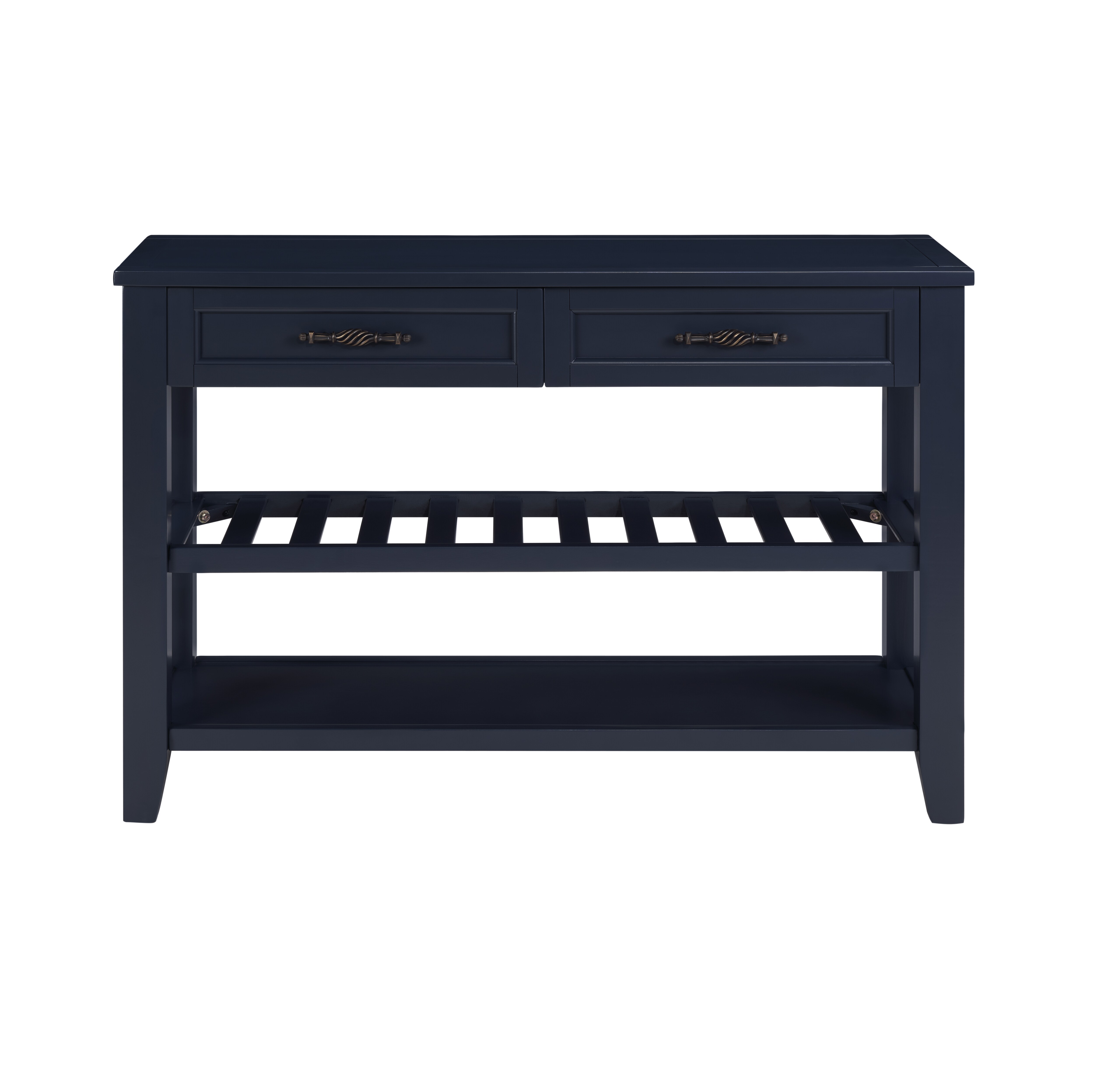 Retro Design Console Table With Two Open Shelves, Pine Solid Wood Frame And Legs For Living Room