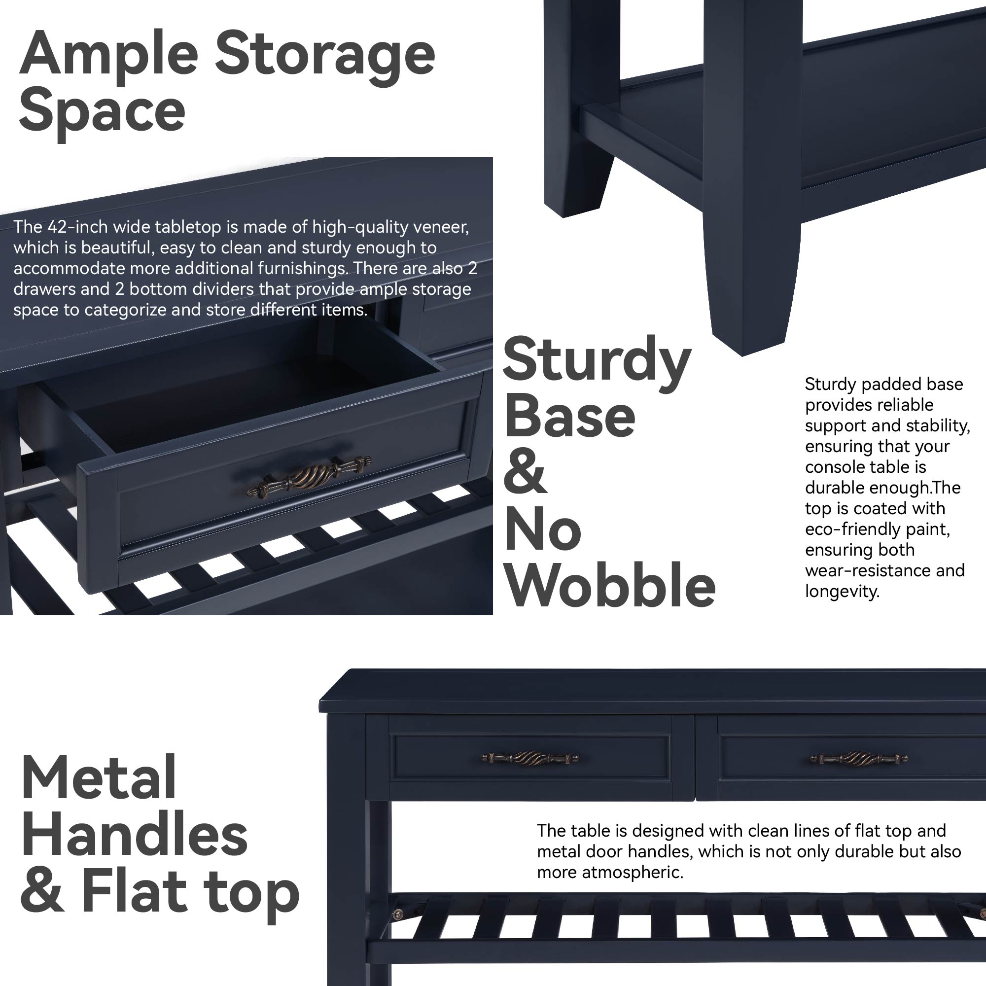 【Functional Storage】: Equipped with two spacious drawers and two bottom shelves, this console table provides ample storage space for organizing your essentials, keeping your living area neat and clutter-free.