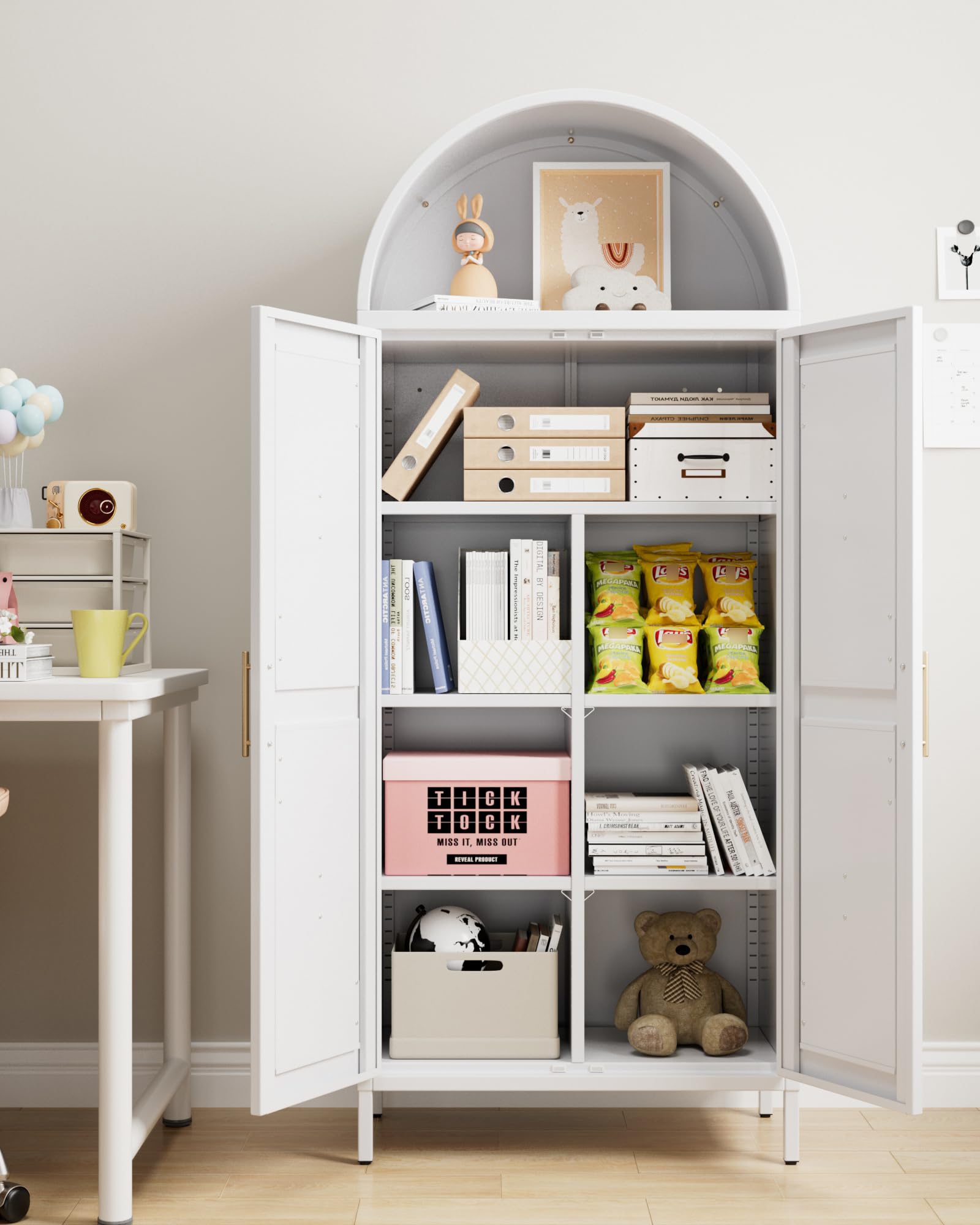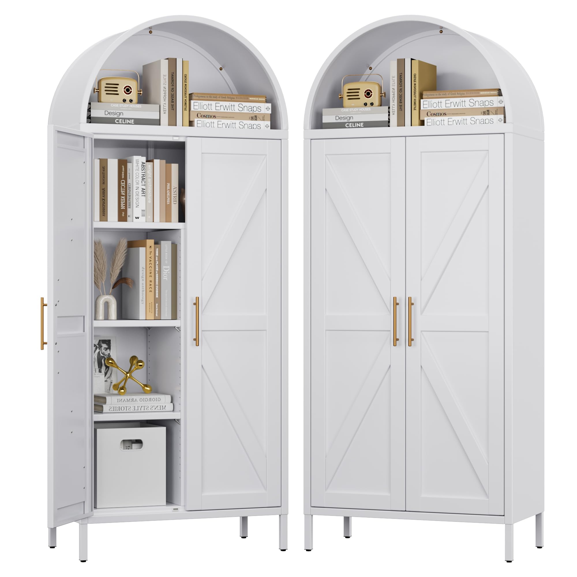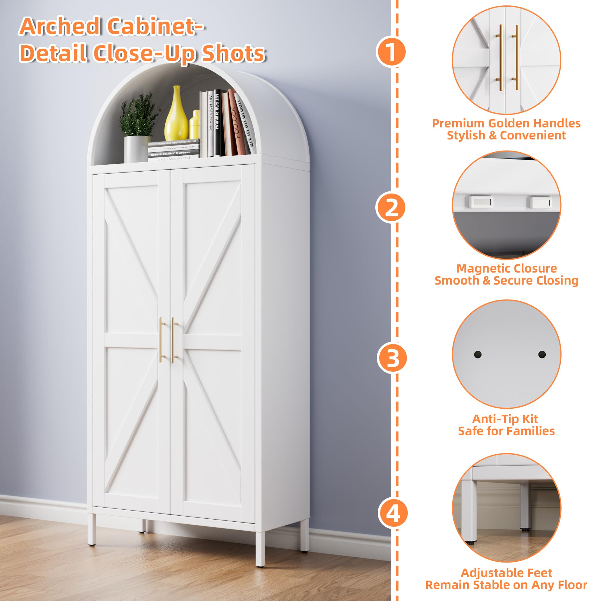 • Unique Arched Shape - Its gracefully curved silhouette makes it a statement piece that adds modern elegance to your home office. It showcases your china or treasured possessions. Tall arched pantry cabinet is both stylish and practical, making it an ideal addition to any room.