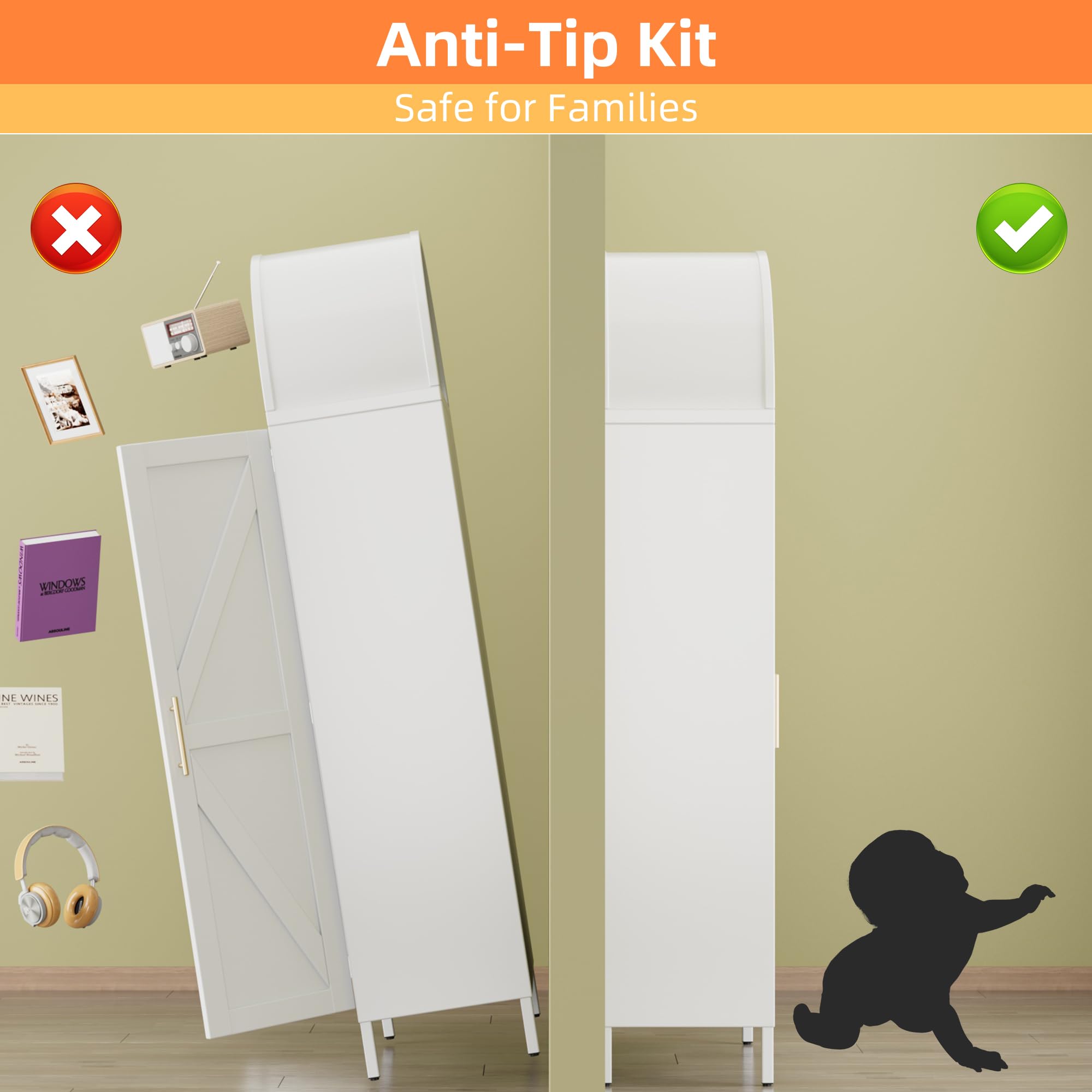 • Durable and Sturdy Design - Crafted for durability, this pantry cabinet features two stunning gold metal handles that add a touch of sophistication. Crafted from high-quality steel, this durable cupboard promises exceptional sturdiness and longevity, making it a reliable addition to your home.