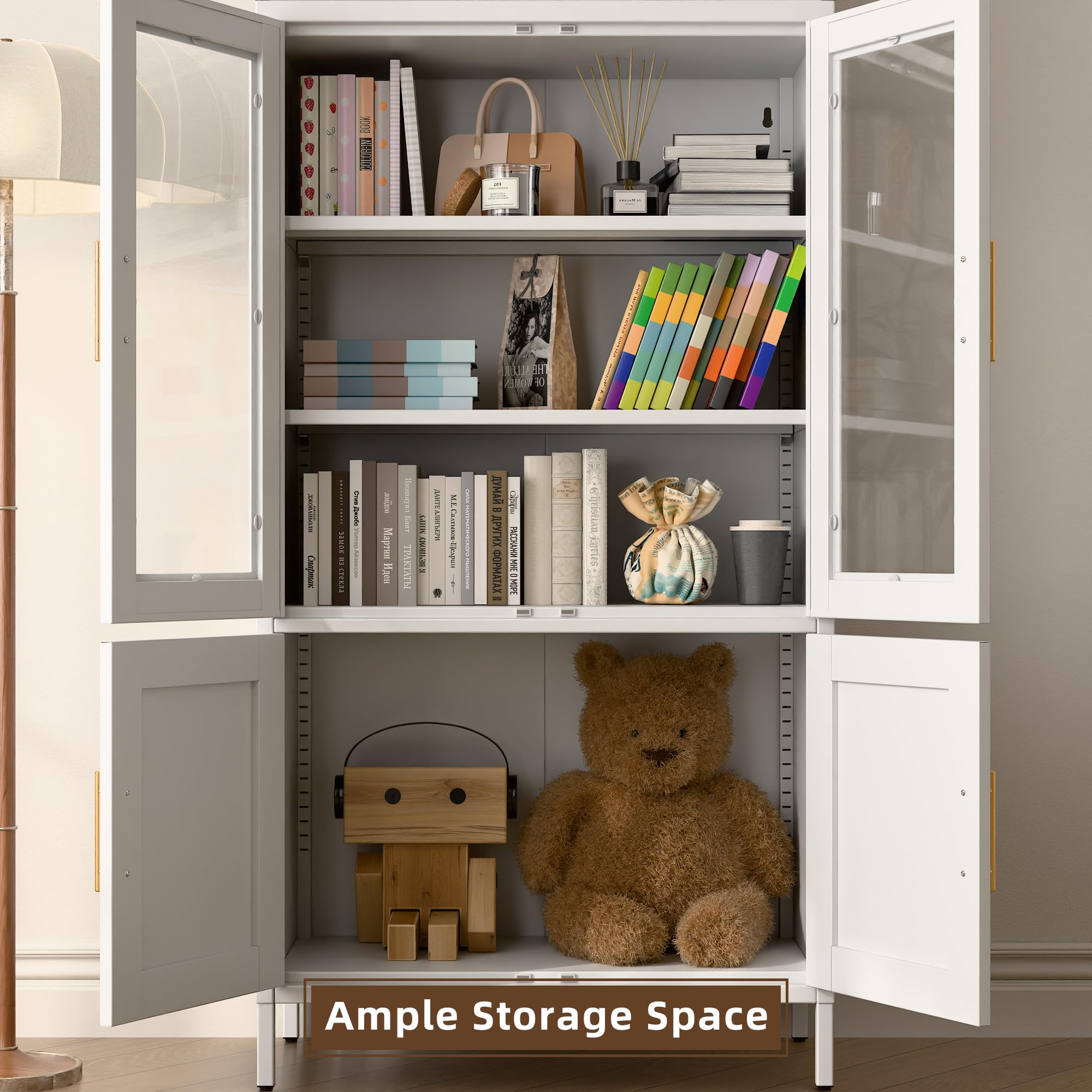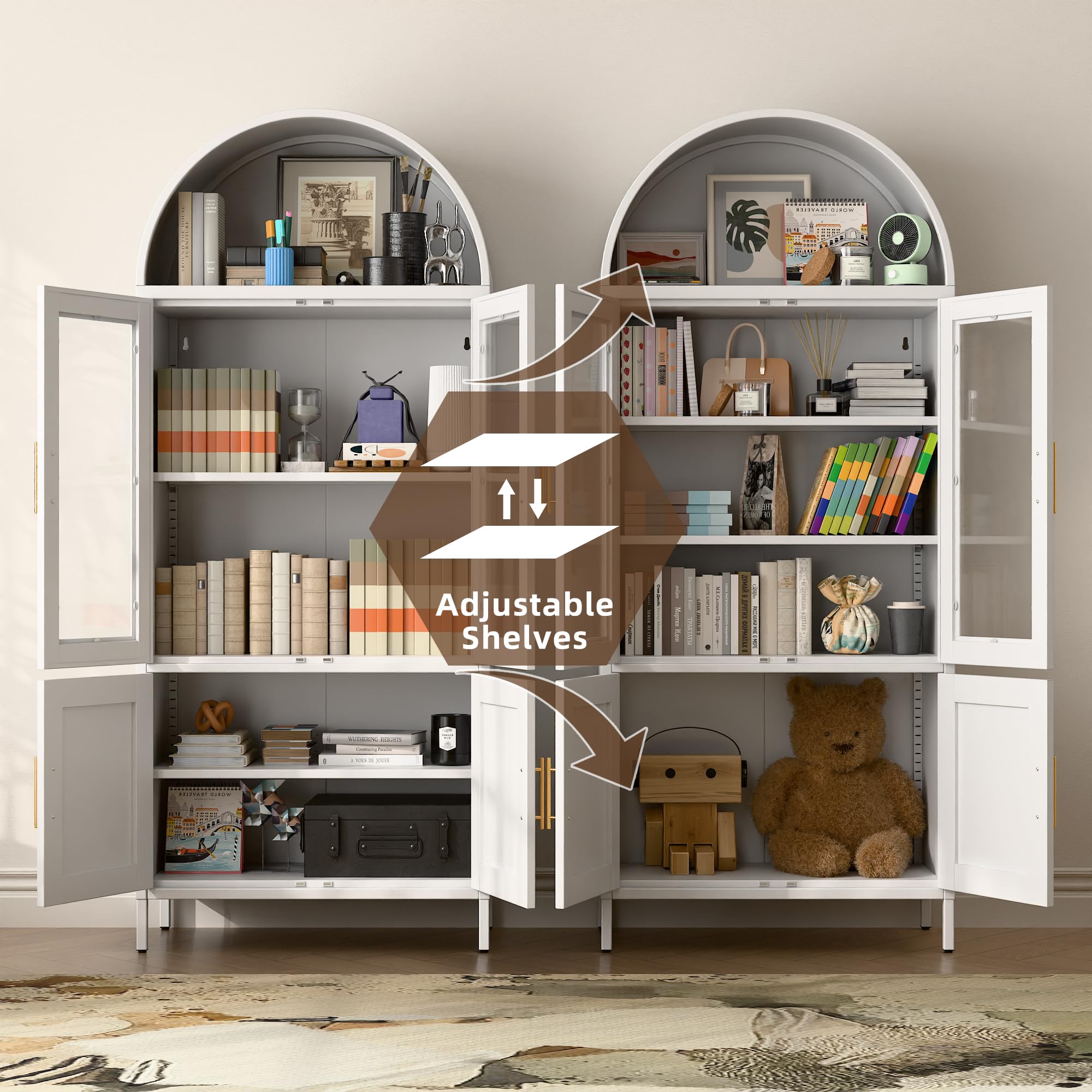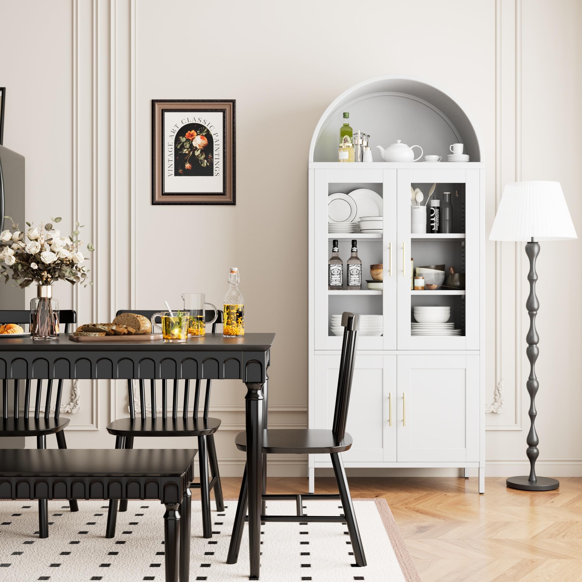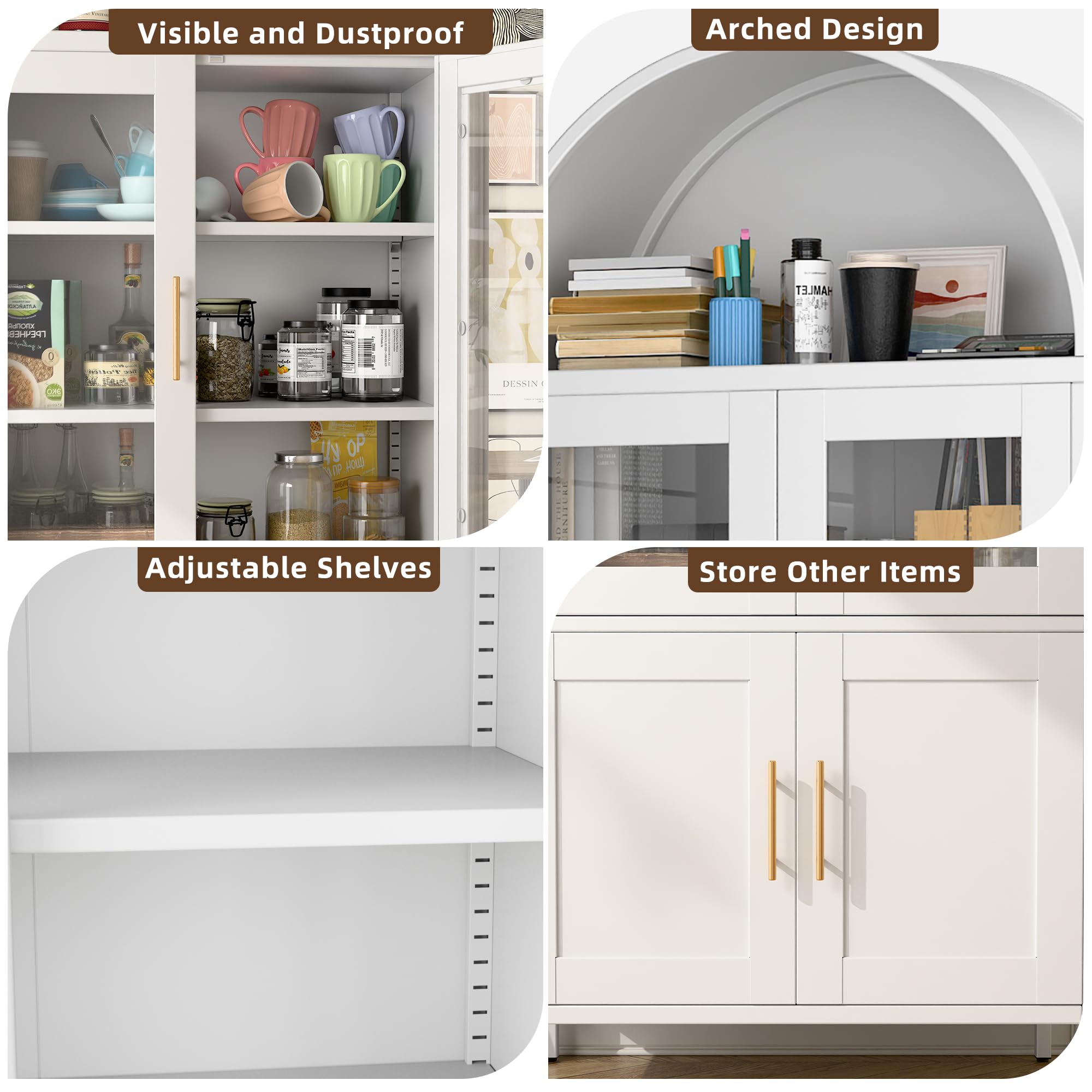 • 【Stylish Arch Design】The metal arched kitchen pantry cabinet is a stunning combination of design and practicality. Its gracefully arched silhouette serves as a statement piece, adding modern elegance to your home office. With two fully enclosed glass doors that showcase your china or prized possessions, this tall arched cabinet is stylish and functional, making it a perfect addition to any room.
