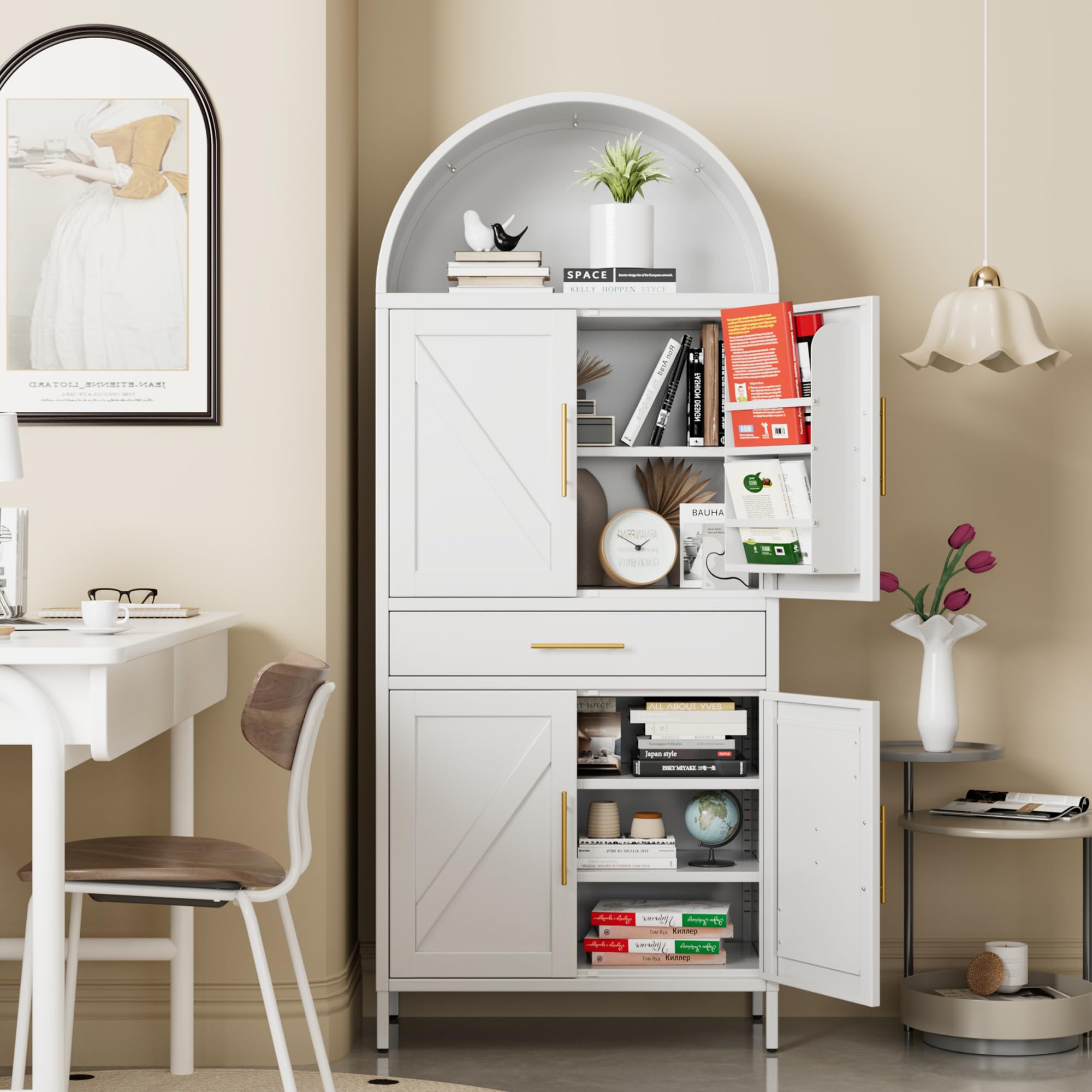 • High Quality:The arched storage display cabinet is made of metal, which is sturdy and durable, not prone to corrosion or deformation, environmentally friendly and formaldehyde-free. The white arched cabinet is more green and environmentally friendly than wooden cabinets, creating a healthy and comfortable environment. It is suitable for various occasions such as indoors, offices, and warehouses.