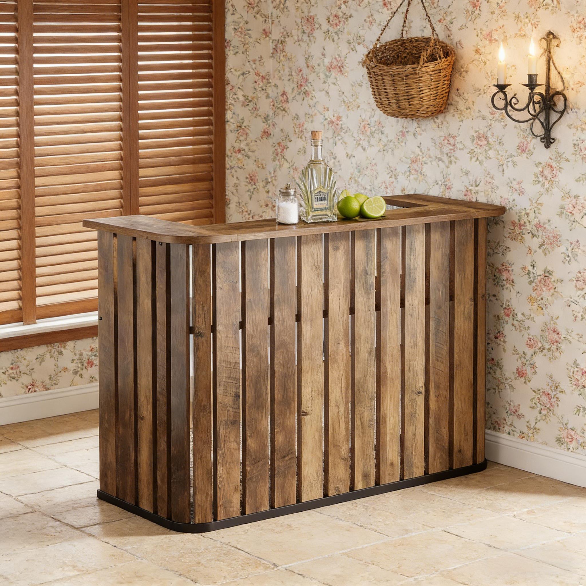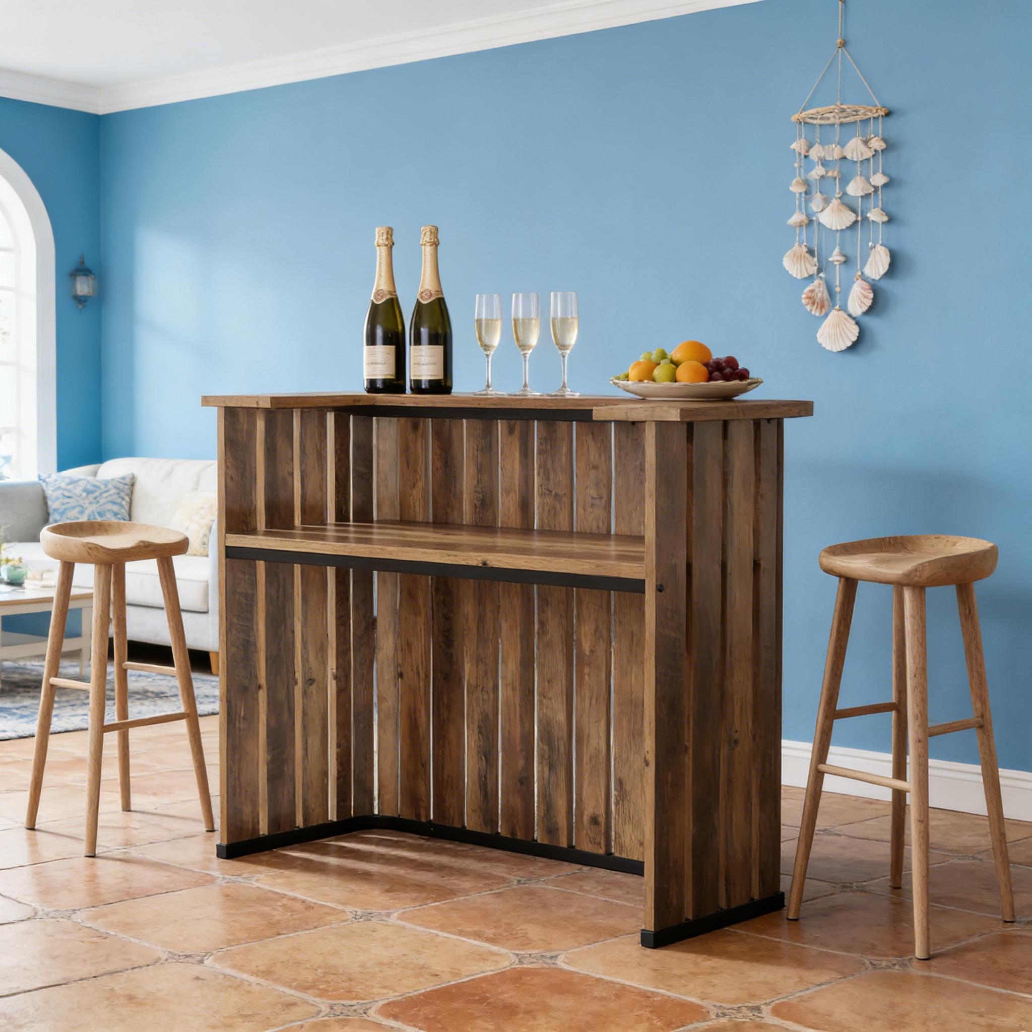Important Reminder!!! 1) Attention: All products in our store do not support Canada self pickup ordering. Please do not create shipping labels for Canada. Our American products do not support self pickup to Canada 2)We do not ship to Alaska, Hawaii, US protectorates (e.g., Puerto Rico), P.O. boxes, or APO/FPO addresse 3)We don’t accept non-defective remorse returns Charming Farmhouse Bar Table - Invite country charm to your space with our farmhouse-style bar table. Its classic brown finish and slat-joint design enhance any setting. Functional Design - The table's unique U-shaped top is perfect for hosting friends and enjoying drinks. Inside, there's ample space for storing wines and glasses. Versatile and Stylish - Ideal for home wine-tasting areas, restaurants, bars, and cellars, this elegantly designed bar table fits seamlessly into various interiors. Premium Build - Made from high-quality MDF and reinforced with metal brackets, the table is sturdy and durable. Its U-shaped frame ensures excellent load-bearing capacity. Hassle-Free Assembly - All installation tools and instructions are included for easy assembly. For any questions, our after-sales team is always ready to help.