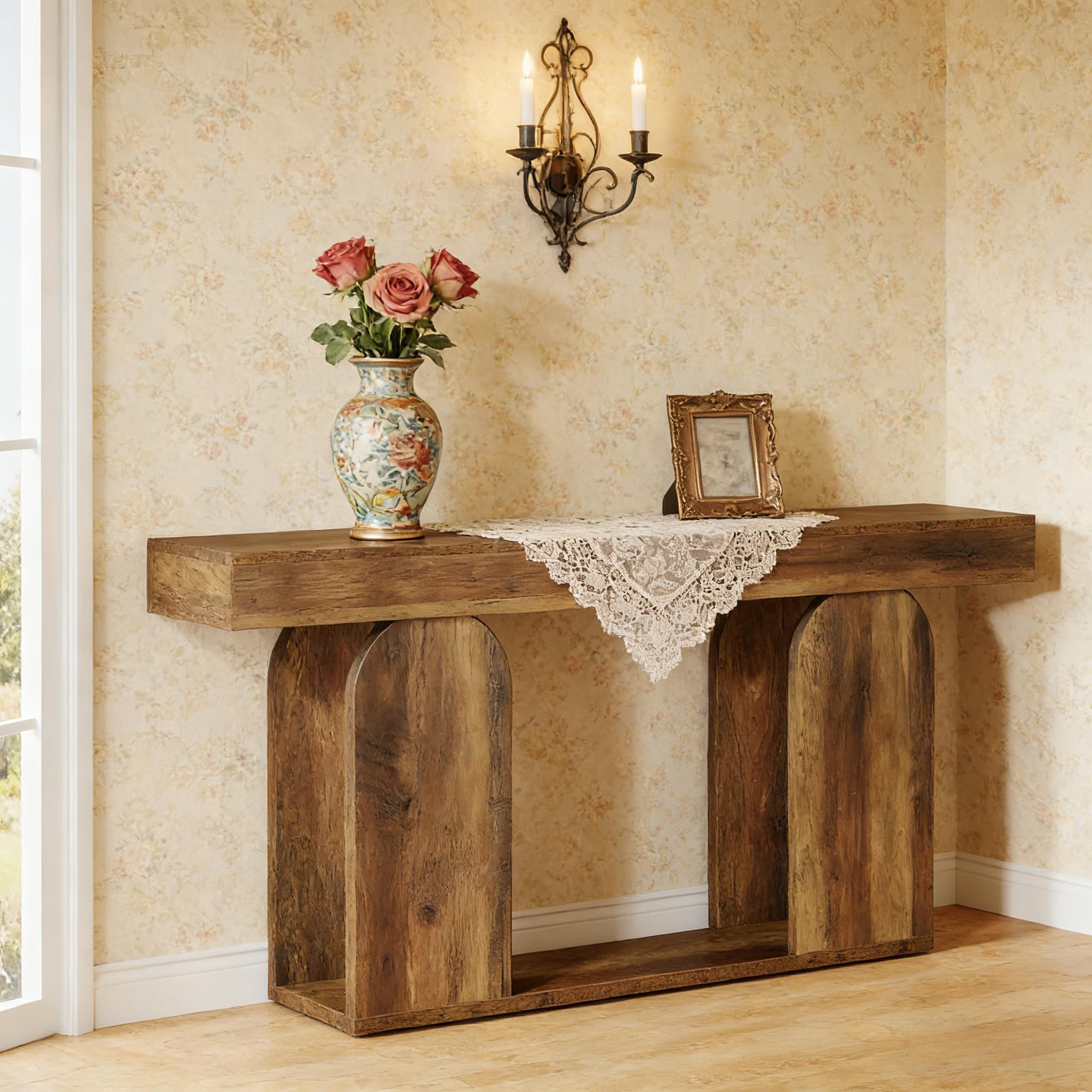 Important Reminder!!! 1) Attention: All products in our store do not support Canada self pickup ordering. Please do not create shipping labels for Canada. Our American products do not support self pickup to Canada 2)We do not ship to Alaska, Hawaii, US protectorates (e.g., Puerto Rico), P.O. boxes, or APO/FPO addresse 3)We don’t accept non-defective remorse returns Refined Minimalism - This console table modernizes your space with a unique blend of simplicity and sophistication. Flexible Placement - Use it as a sofa table, entryway piece, or decorative addition anywhere in your house. This versatile table effortlessly complements any living space. Practical Storage - The table comes with an open bottom shelf, ideal for decluttering and displaying anything from décor to media equipment or shoes. Sturdy and Durable - Made from top-notch MDF, this table stands up to daily use while preserving its sleek aesthetics. Showcase your Style - With its strong build and sleek design, this console table becomes your living area or hallway's centerpiece, perfect for flaunting decoratives or family pictures.