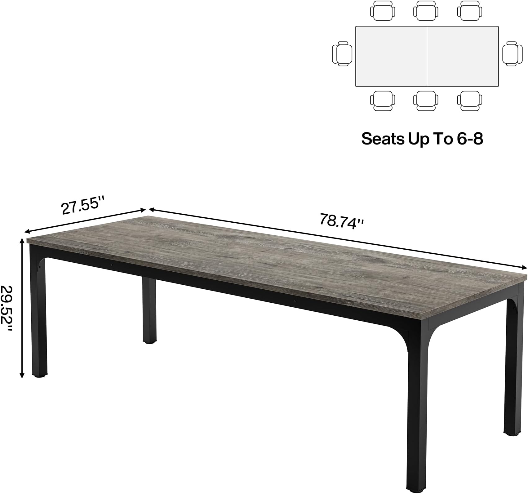 Important Reminder!!! 1) Attention: All products in our store do not support Canada self pickup ordering. Please do not create shipping labels for Canada. Our American products do not support self pickup to Canada 2)We do not ship to Alaska, Hawaii, US protectorates (e.g., Puerto Rico), P.O. boxes, or APO/FPO addresse 3)We don’t accept non-defective remorse returns Sturdy Construction - The desk panel is made from a durable 0.98" thick MDF board, and the legs are composed of heavy-duty 1.97" by 1.97" width powder-coated iron pipes for superior stability. Spacious Work Area - This desk offers an exceptionally large 78.7"W x 27.5"D desktop. This spacious workspace easily houses your laptop, phone, books, files, and more, keeping everything you need within your reach. Versatile Use - Perfect for team meetings, brainstorming sessions, and client conferences, this business table's stylistic versatility complements any office or conference room environment. Industrial Style - With a clean and simplistic style void of frills, it caters to originality. Adjustable foot pads eliminate wobble and avoid floor scraping. Fast Assembly & Easy Cleaning - The package includes all necessary tools and instructions. The detailed guide makes assembly straightforward. A damp cloth can easily wipe any dirty stains from its smooth surface.