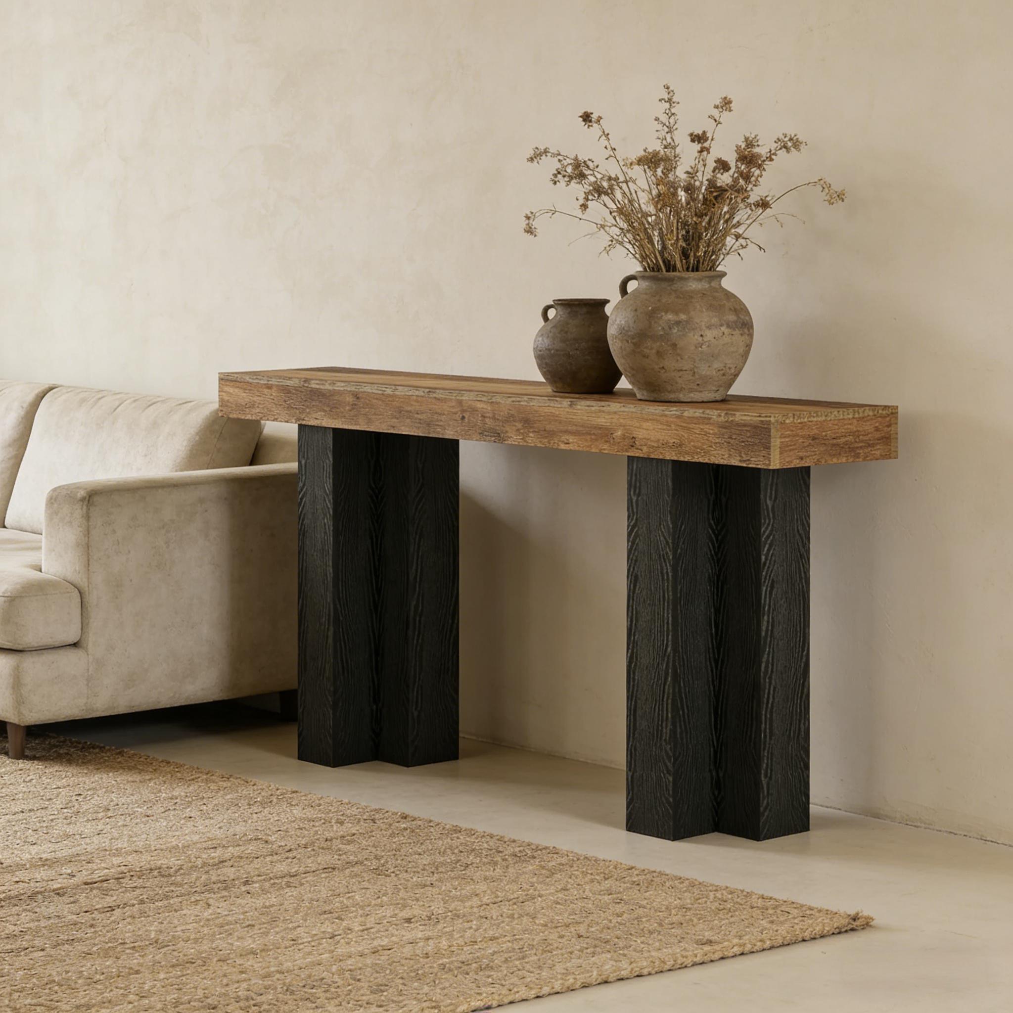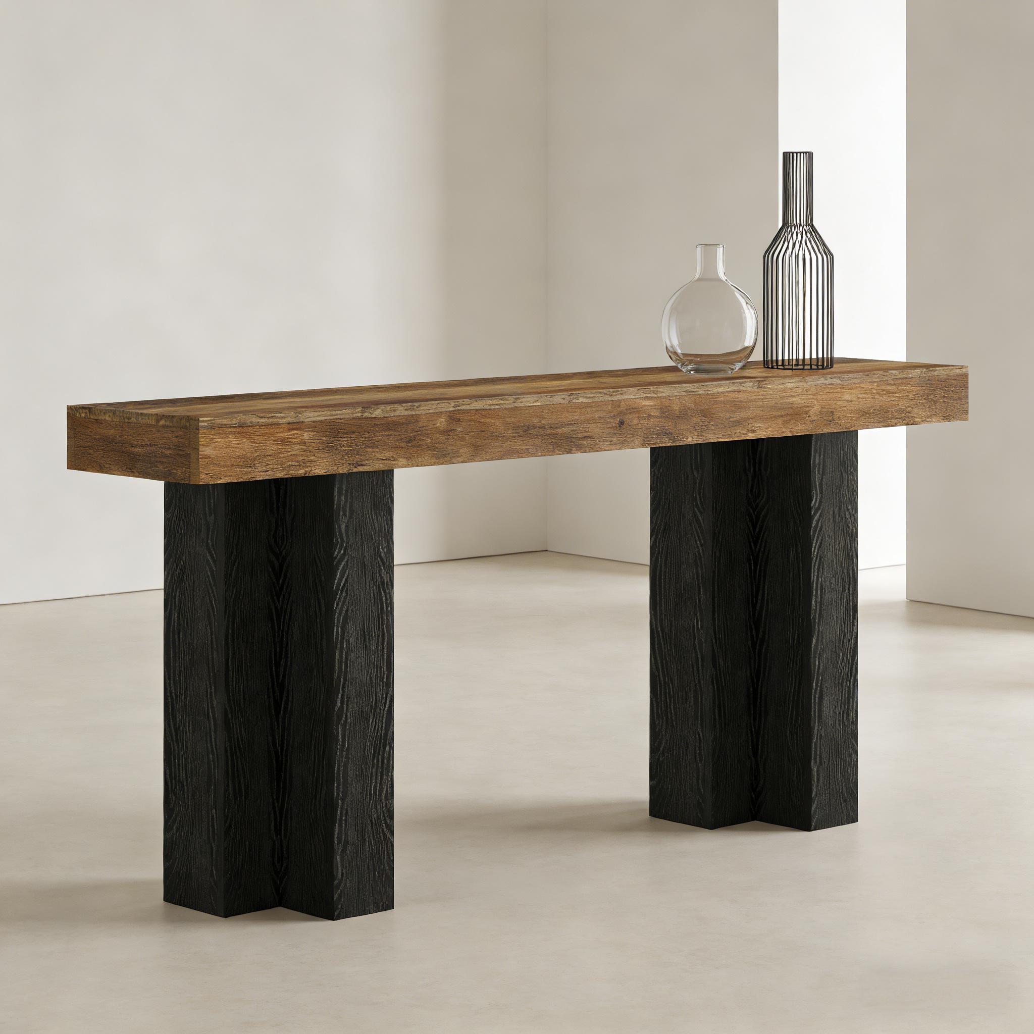 Important Reminder!!! 1) Attention: All products in our store do not support Canada self pickup ordering. Please do not create shipping labels for Canada. Our American products do not support self pickup to Canada 2)We do not ship to Alaska, Hawaii, US protectorates (e.g., Puerto Rico), P.O. boxes, or APO/FPO addresse 3)We don’t accept non-defective remorse returns Dual-Tone Rustic Charm - Enhance the feel of your home with our console table. It combines a warm brown wood-grain top and black-finished legs to create a welcoming atmosphere. It's perfect for any entryway or living area. Ample Display Space - With its size of 11.81" D x 63" W, this sofa table offers a generous surface for displaying your favorite décor items. There's also room beneath the table to accommodate small baskets or robot vacuums, helping to keep your space tidy and free from clutter. Multipurpose Foyer Table - This entryway table provides more than just aesthetic appeal. Use it as a welcoming table for guests, a display table for décor, or a sofa table to add style to your living room. It's a versatile piece that works well in various settings. Durable and Sturdy Construction - Crafted from premium MDF, this farmhouse-style entryway table is designed to provide years of use. The 3.94" thick tabletop is resistant to scratches and easy to clean, while the uniquely designed legs can support up to 300 lbs. Effortless Assembly and Support - Everything you need for easy setup is included in a single package - all the necessary tools, labeled parts, and detailed instructions. We prioritize customer satisfaction, so don't hesitate to contact us if you need any assistance.