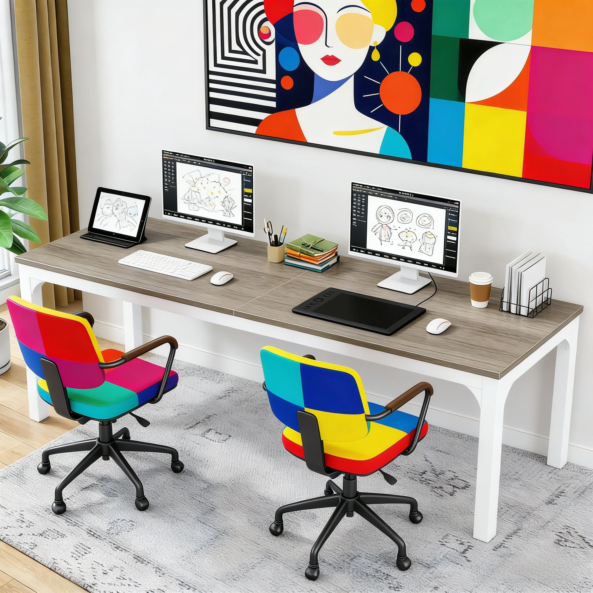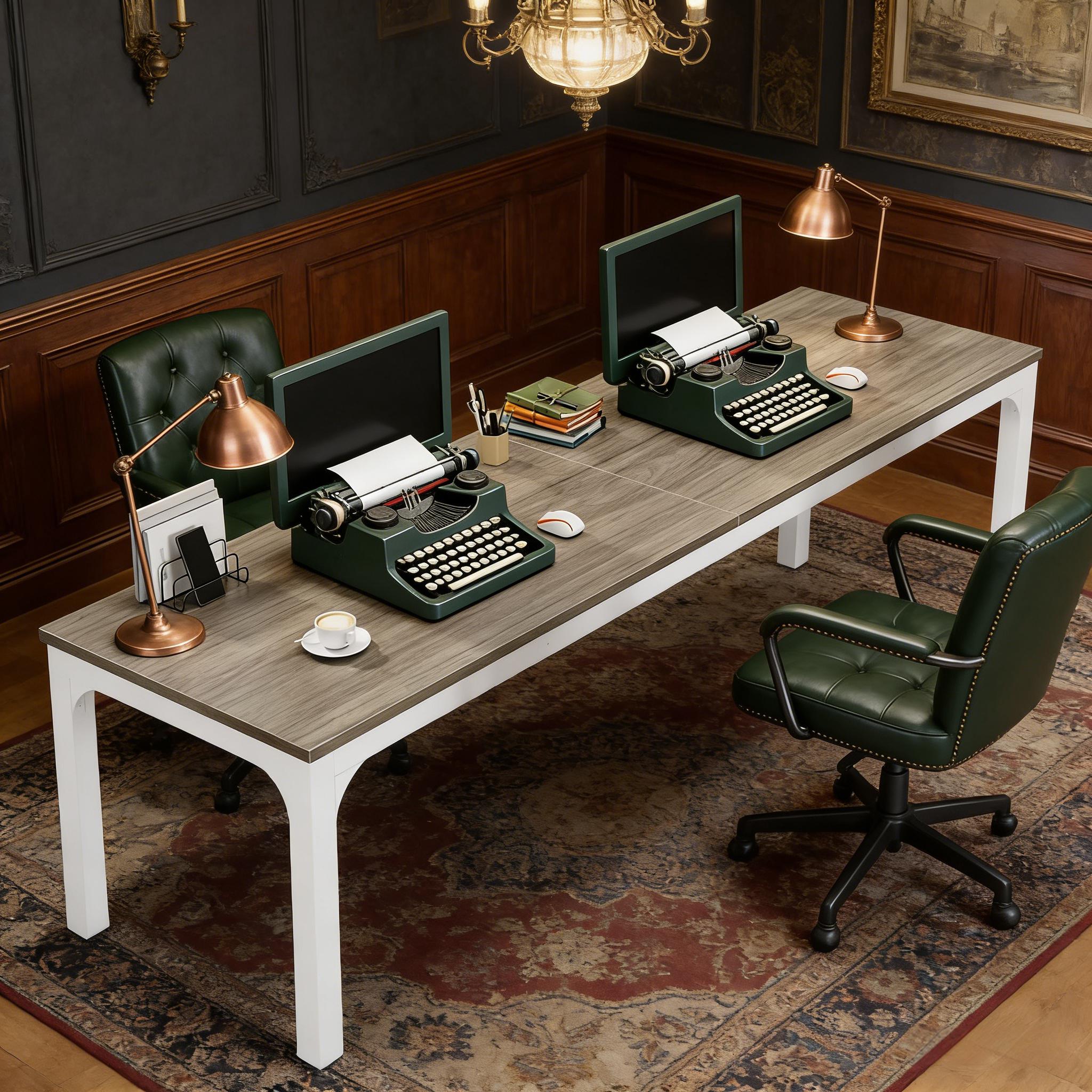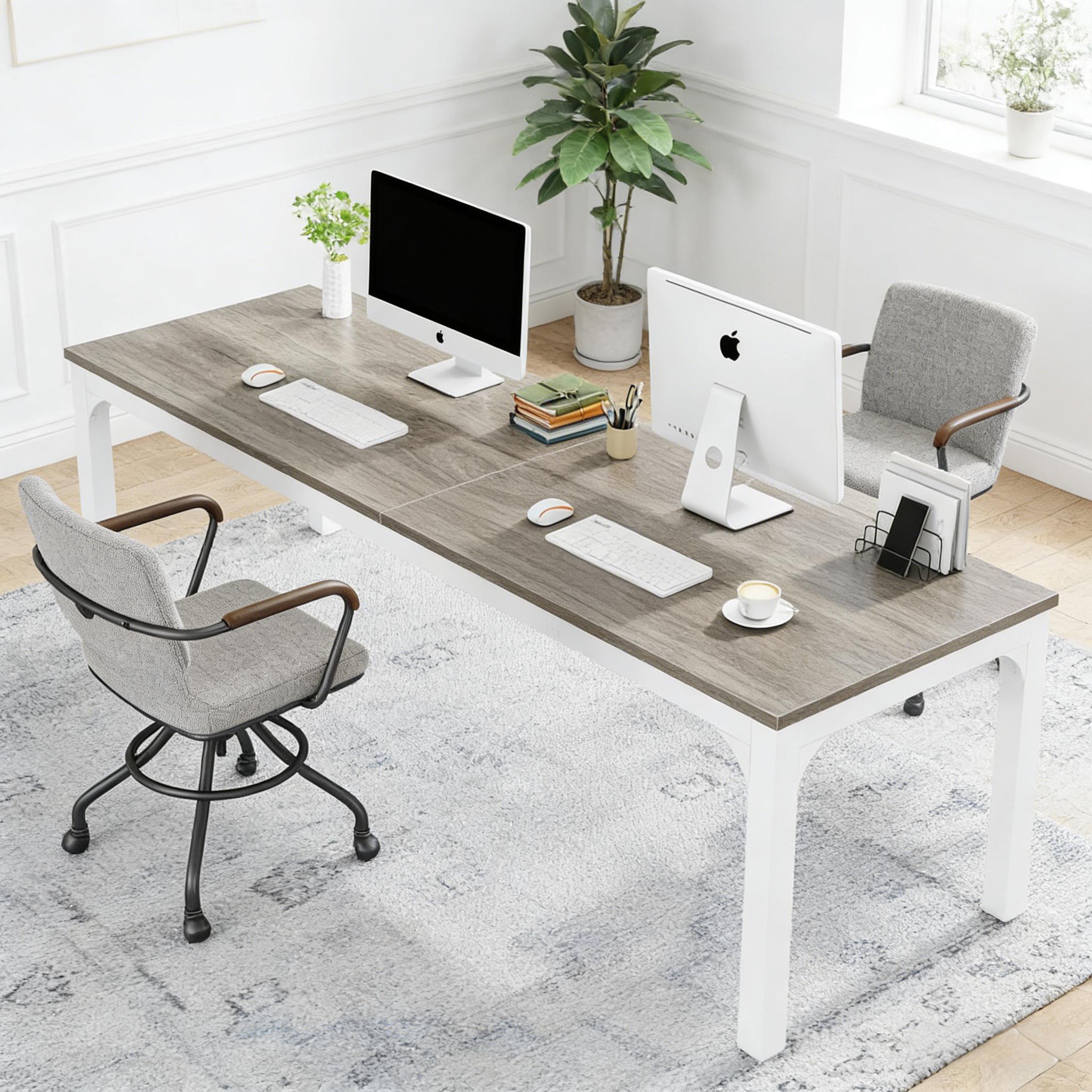 Important Reminder!!! 1) Attention: All products in our store do not support Canada self pickup ordering. Please do not create shipping labels for Canada. Our American products do not support self pickup to Canada 2)We do not ship to Alaska, Hawaii, US protectorates (e.g., Puerto Rico), P.O. boxes, or APO/FPO addresse 3)We don’t accept non-defective remorse returns Robust Construction - The office desk's panel is made of a 0.59" thick MDF Board, and the legs are built with heavy-duty powder-coated iron pipes measuring 1.96" by 1.96" in width. This construction offers industrial-style stability and durability, with a weight capacity of up to 200lbs. Expansive Workspace - The Extra Long Office Desk measures 78.74"W x 27.55"D x 29.52"H. This large desktop provides ample space for your laptop, phone, books, files, and more, keeping everything you need for efficient home office work within your reach. Dual Workspace Desk - This double workstation can easily accommodate two computers simultaneously. Two people can work side by side, independently, without disruptions, making it ideal for roommates or collaborative work. Simplistic Industrial Design - The office desk features a minimalist modern design with no additional decor, fulfilling your home office furniture needs. The adjustable foot pads aid in eliminating any wobbles and protect your floors from scrapes. Quick Assembly & Easy Maintenance - The desk comes with tools and instructions for quick and straightforward assembly. Its smooth surface allows for easy cleaning, letting you wipe off any dirty stains effortlessly.