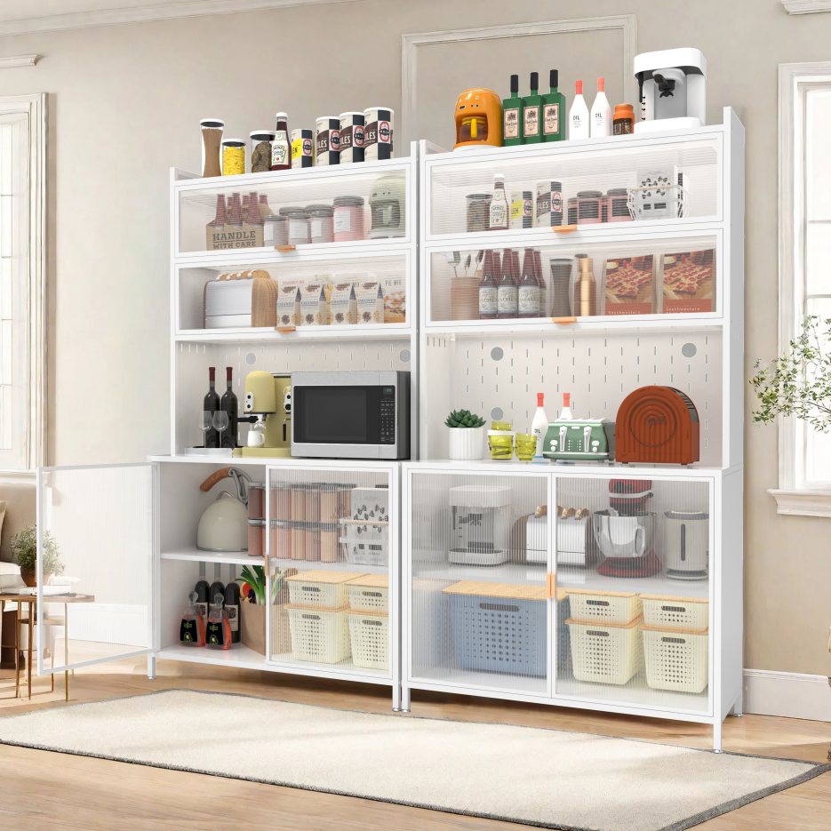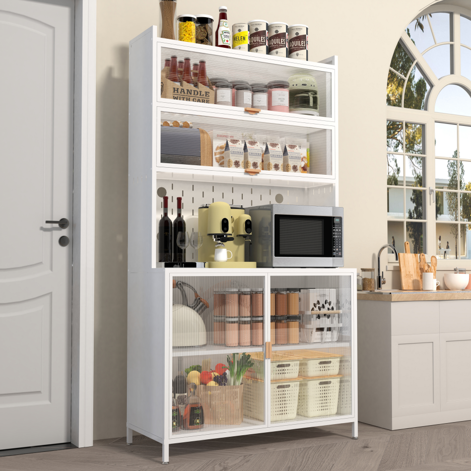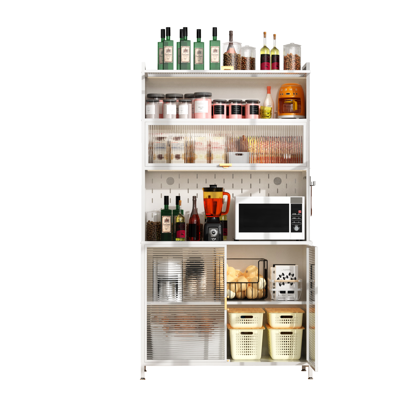 73'' Tall Kitchen Pantry Cabinet , 6 Level Flip Door With Pegboard Metal Pantry Storage Cabinet, Anti-Tip Design Hutch For Kitchen, Dining Room, Livin