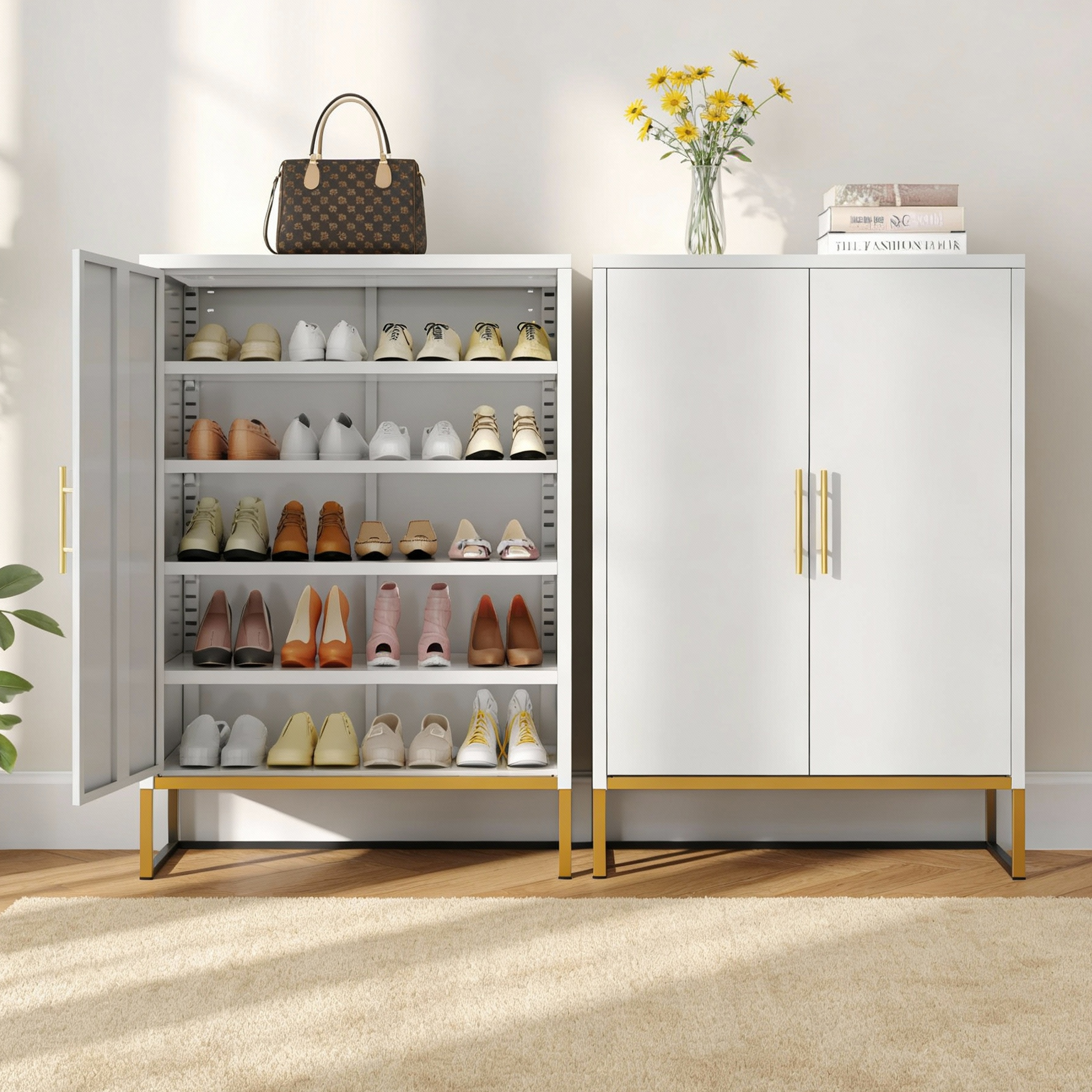 • 【Adjustable Shelves】:Customize the interior with height-adjustable shelves to accommodate all types of shoes, from slippers and sneakers to high heels even tall boots, ensuring efficient use of space.