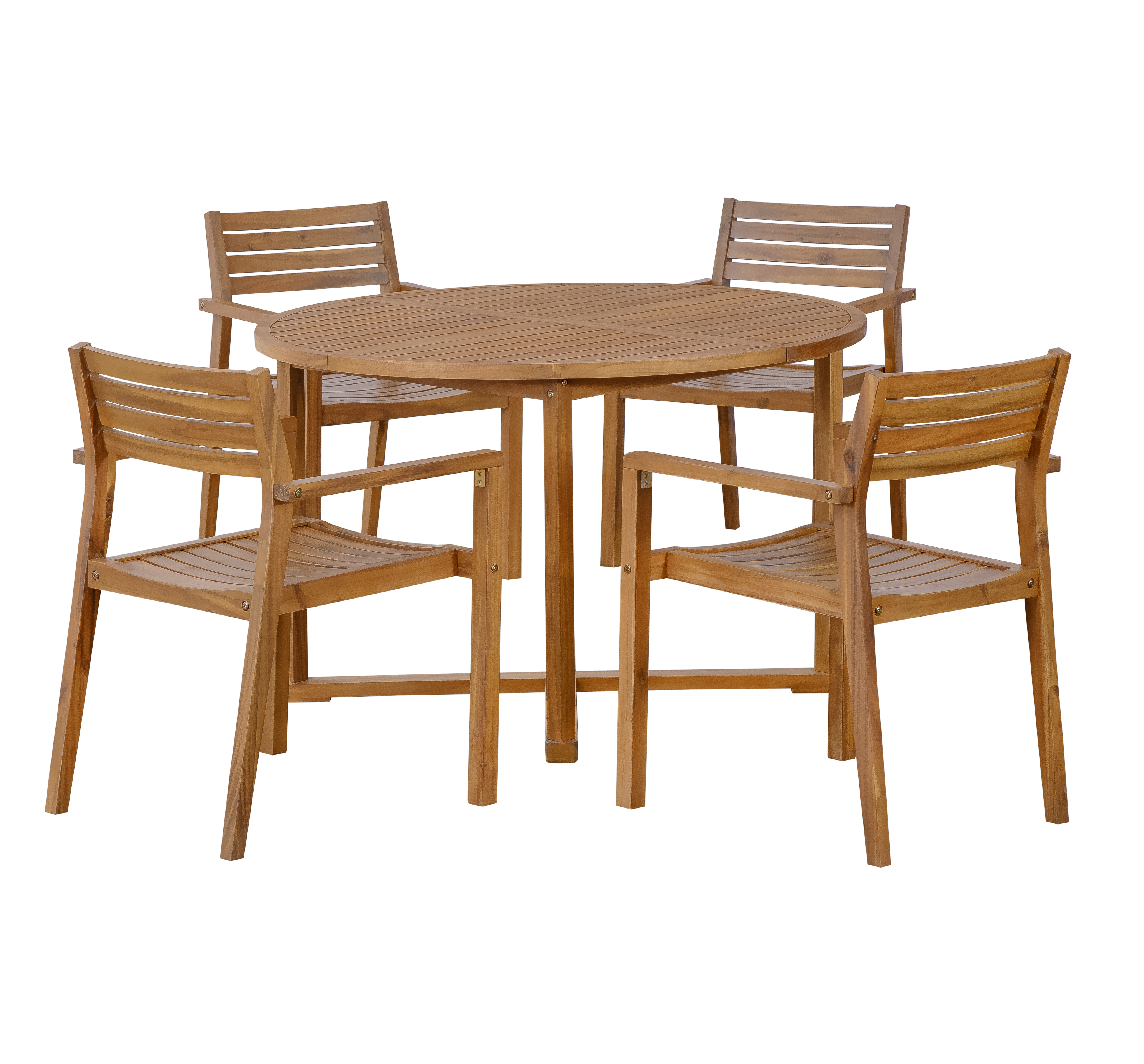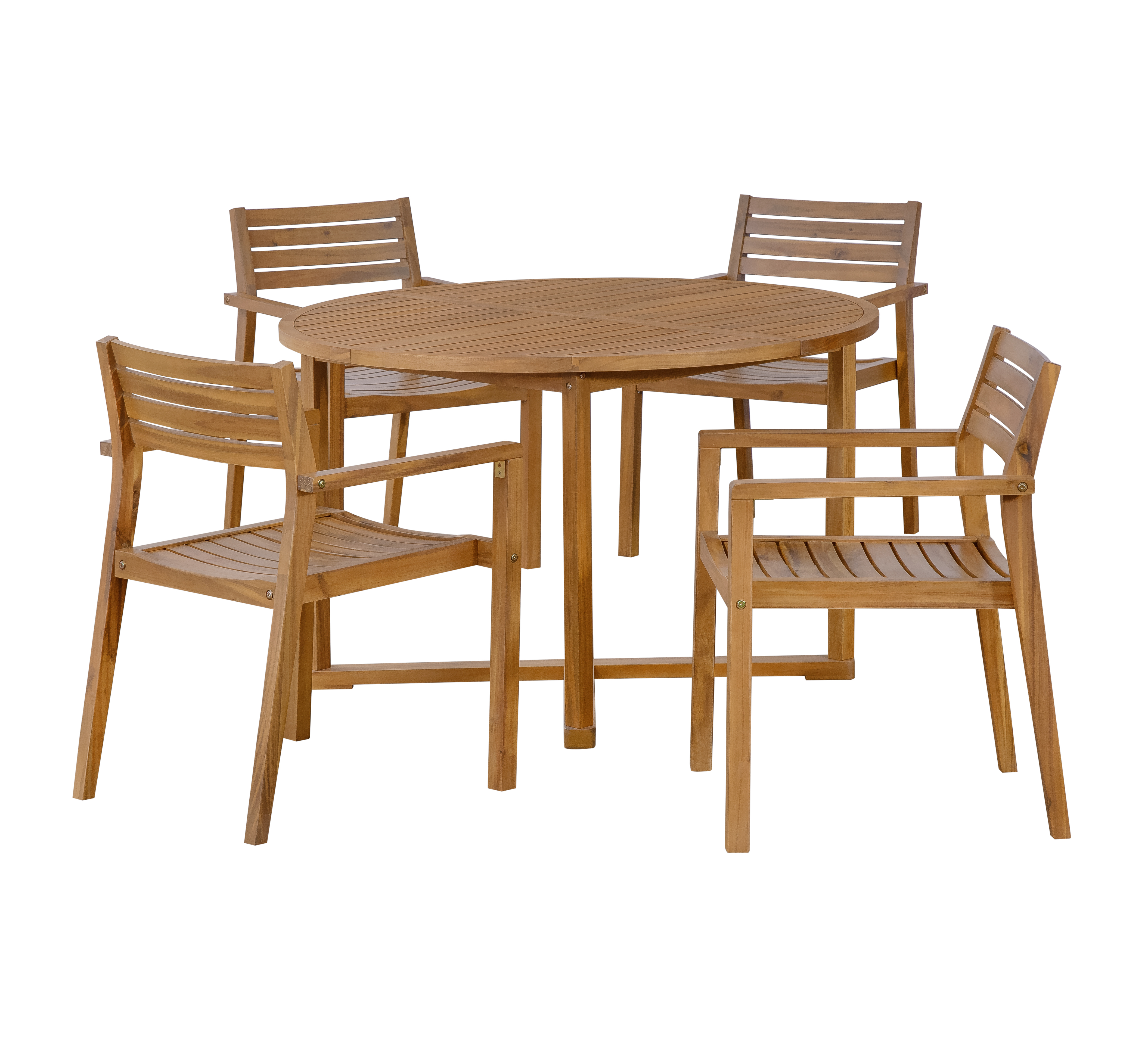 Home > U STYLE 5-Piece Outdoor Dining Set With 4 Acacia Wood Chairs,47.2 Round Dining Table With Slatted Design, Ideal For Patios, Gardens, Poolsides, And La