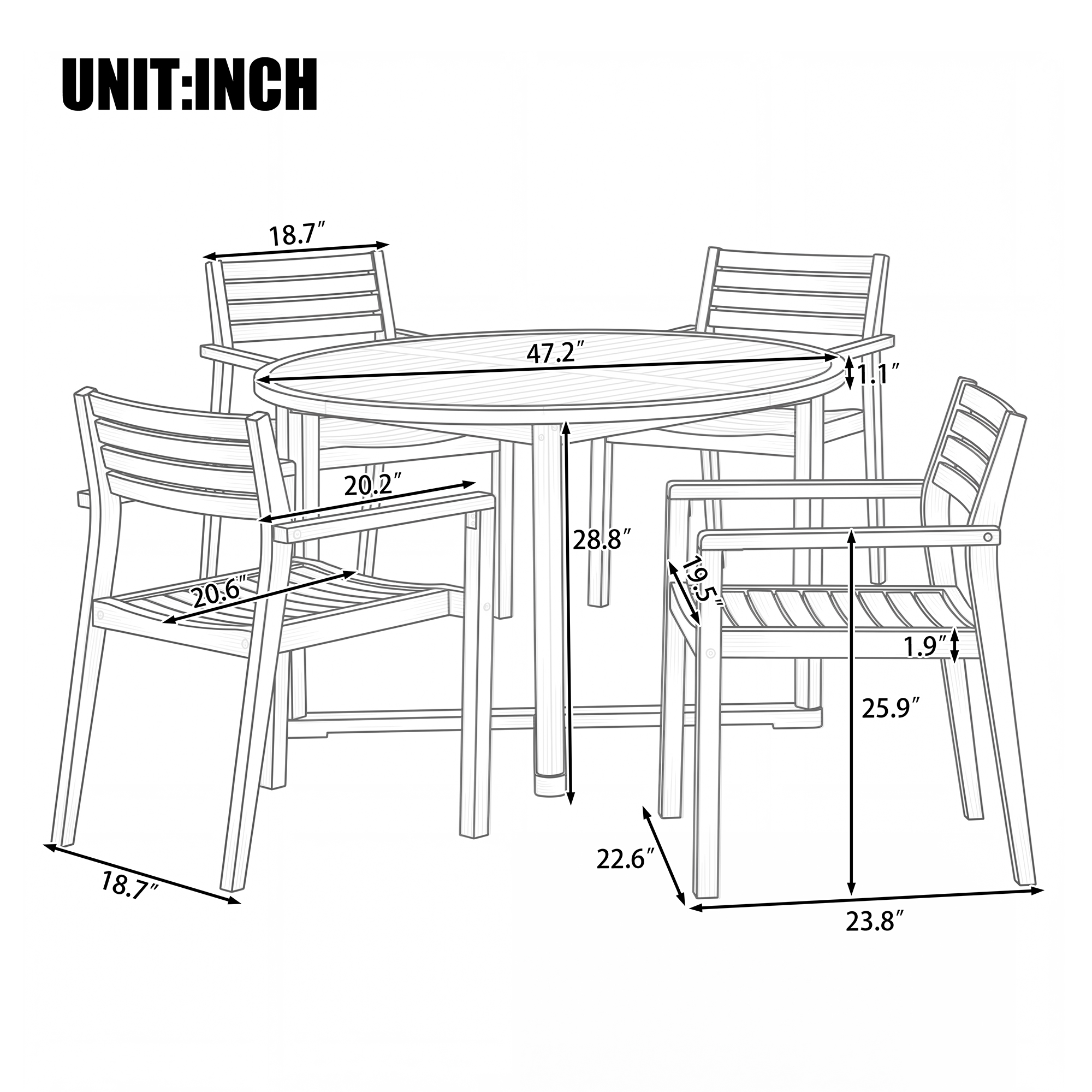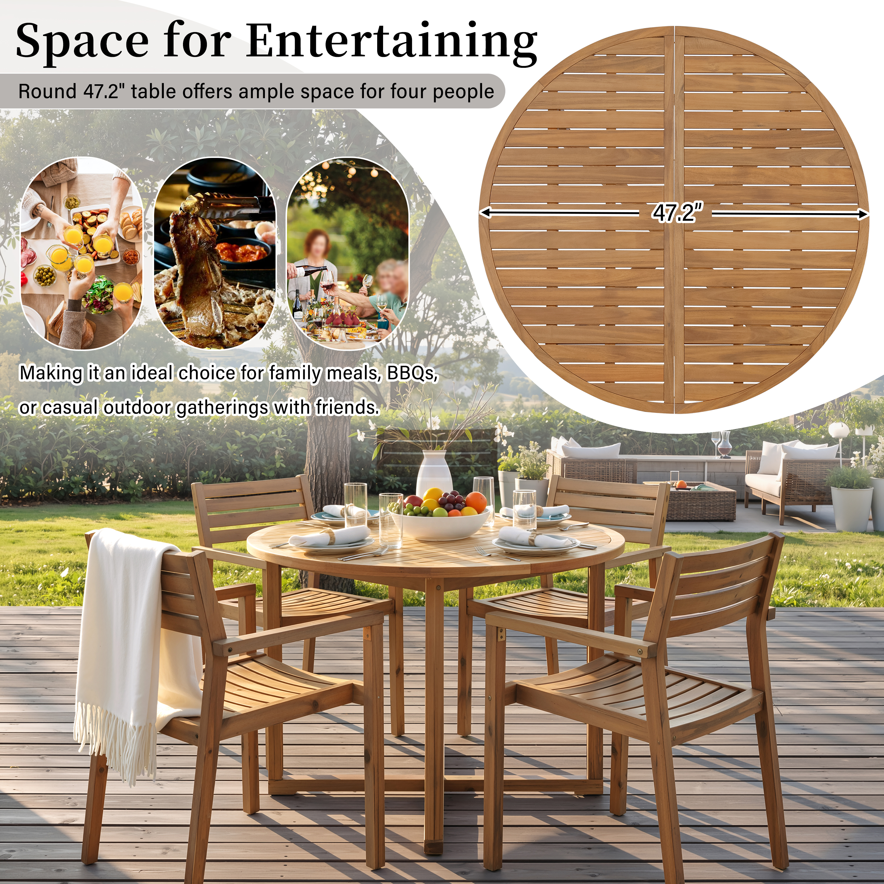 Product Name:U_STYLE 5-Piece Outdoor Dining Set with 4 Acacia Wood Chairs,47.2" Round Dining Table with Slatted Design, Ideal for Patios, Gardens, Poolsides, and Lawn Areas & Indoor