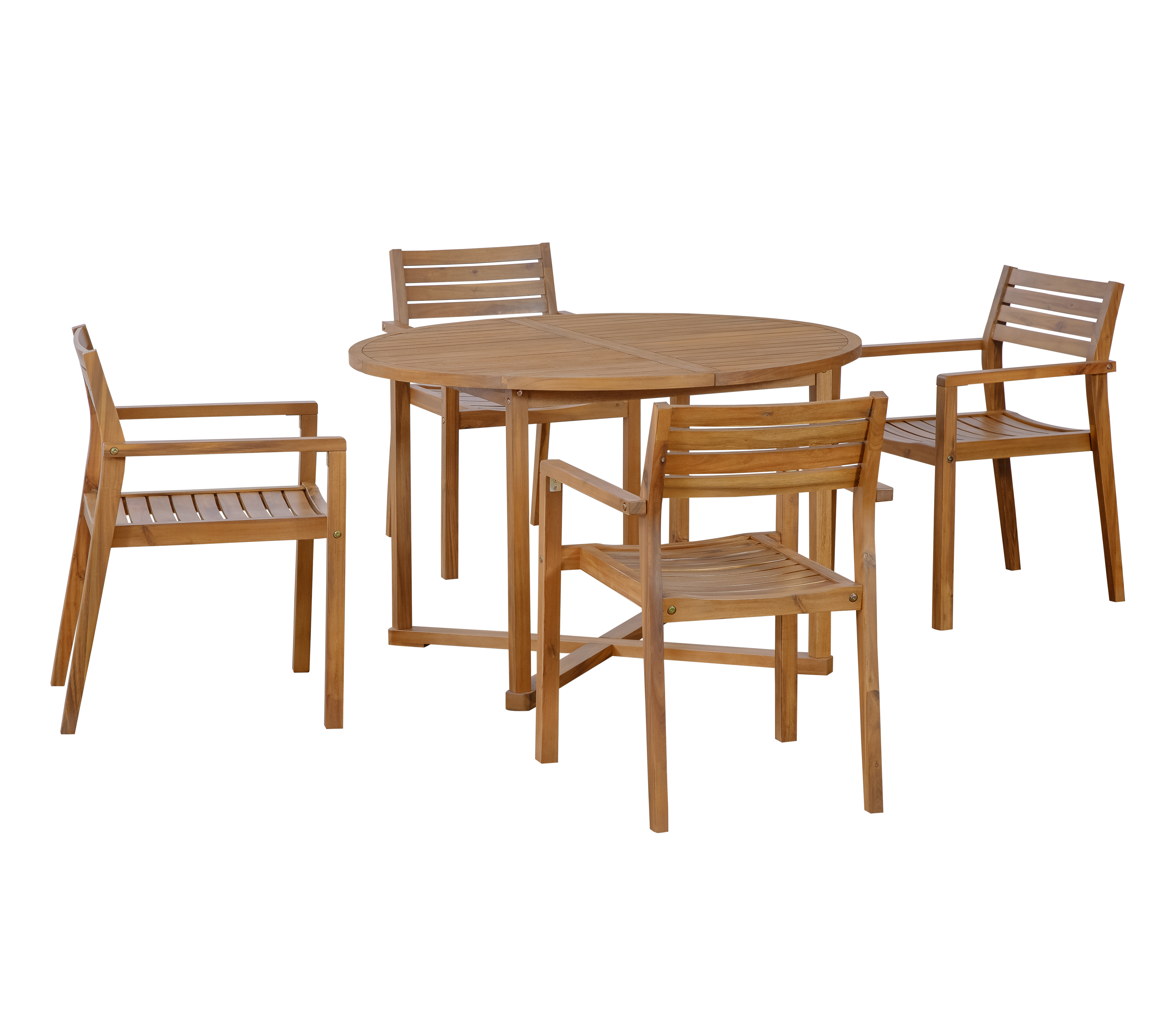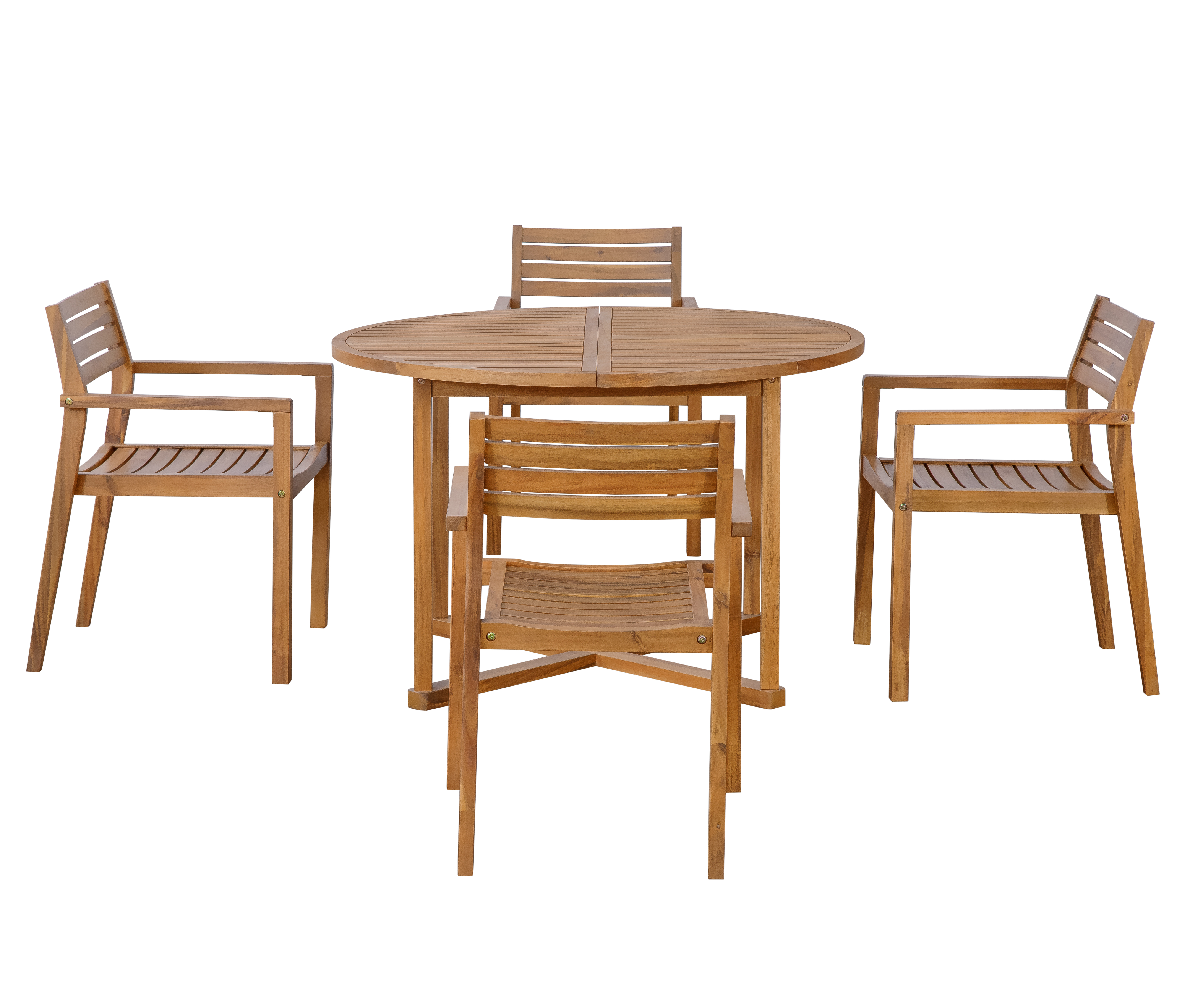 U STYLE 5-Piece Outdoor Dining Set With 4 Acacia Wood Chairs,47.2 Round Dining Table With Slatted Design, Ideal For Patios, Gardens, Poolsides, And La