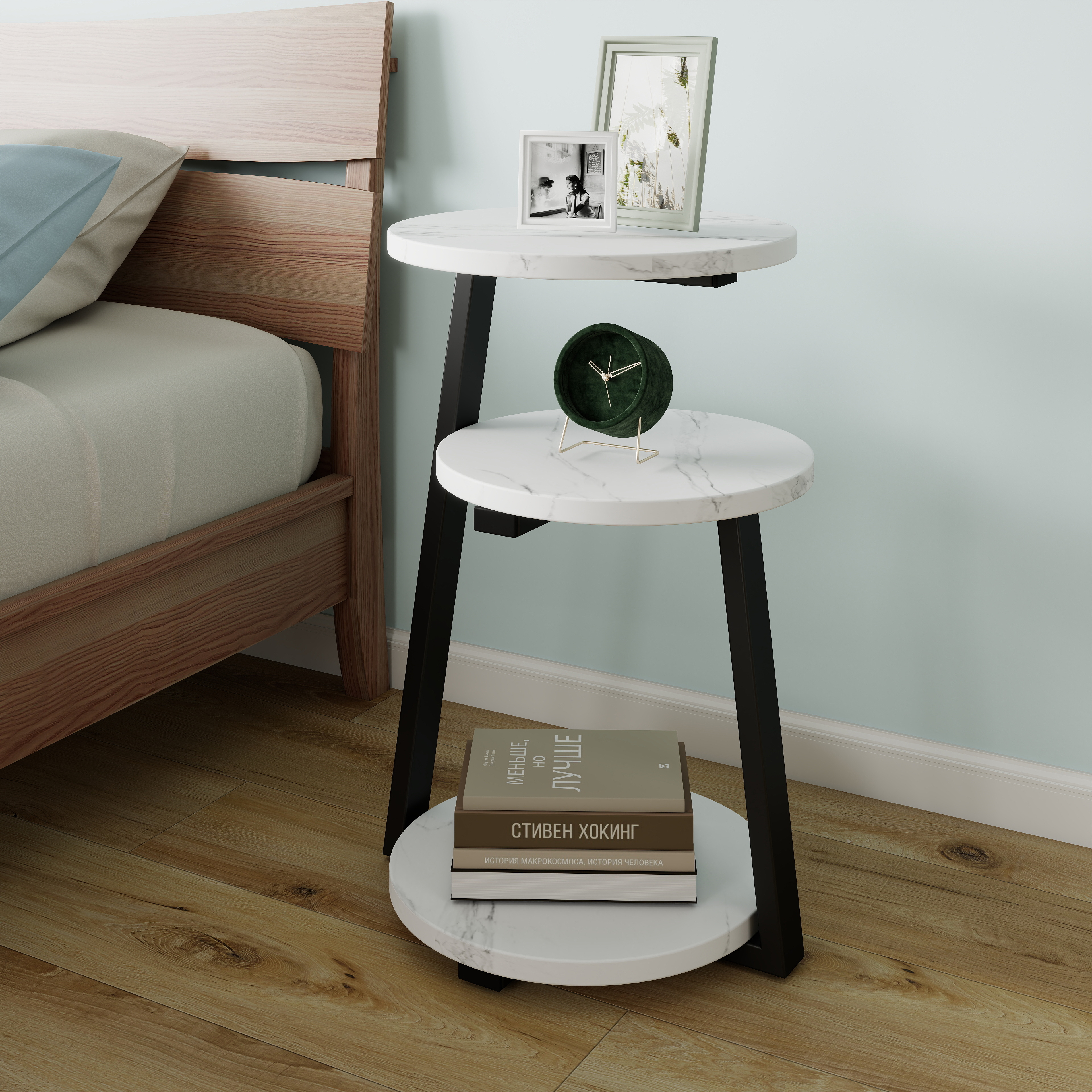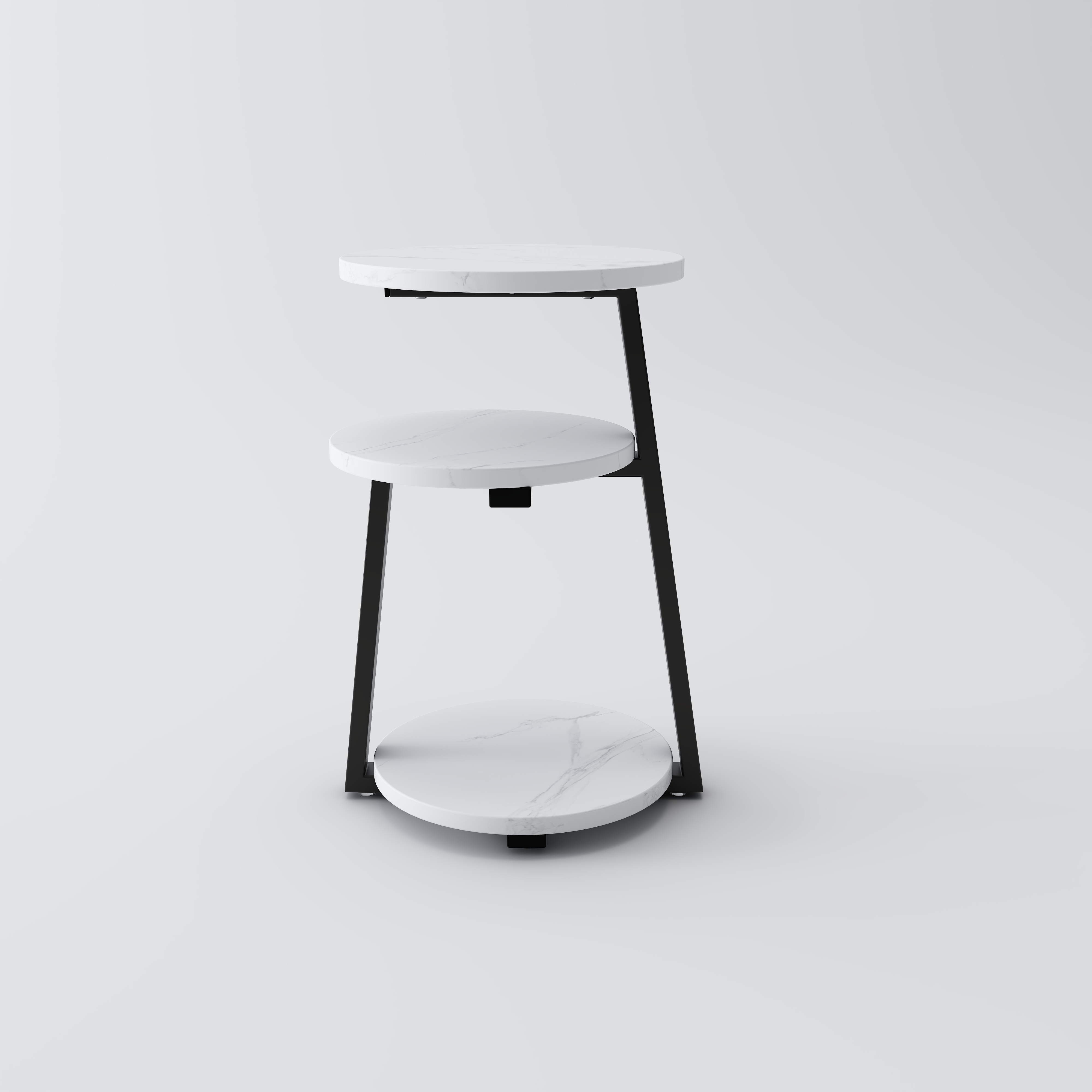 Product Name:Small Round Side Table with 3-Tier Storage - White Black End Table, Sturdy Metal Frame Nightstand, Compact Couch Table for Bedroom Living Room