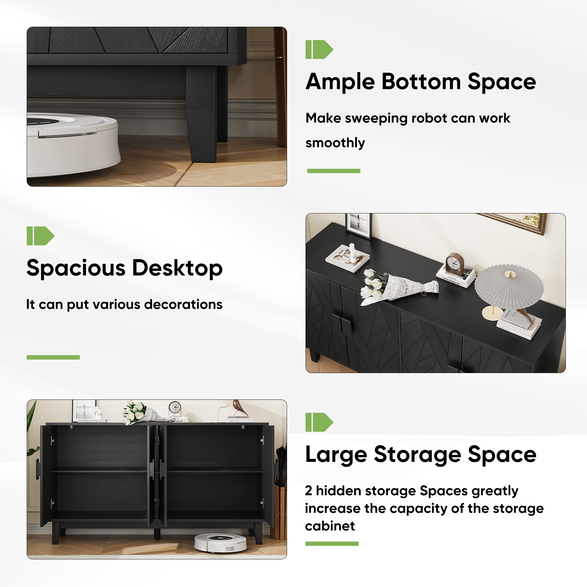 - ã€Multifunctional side cabinet】This modern storage cabinet has a large storage space and can be considered an excellent storage solution for different rooms. You can use it as a coffee bar cabinet, kitchen storage cabinet, TV console table, foyer furniture, or bookshelf. It is the ideal furniture for your living room, dining room, kitchen, entryway, or hallway.