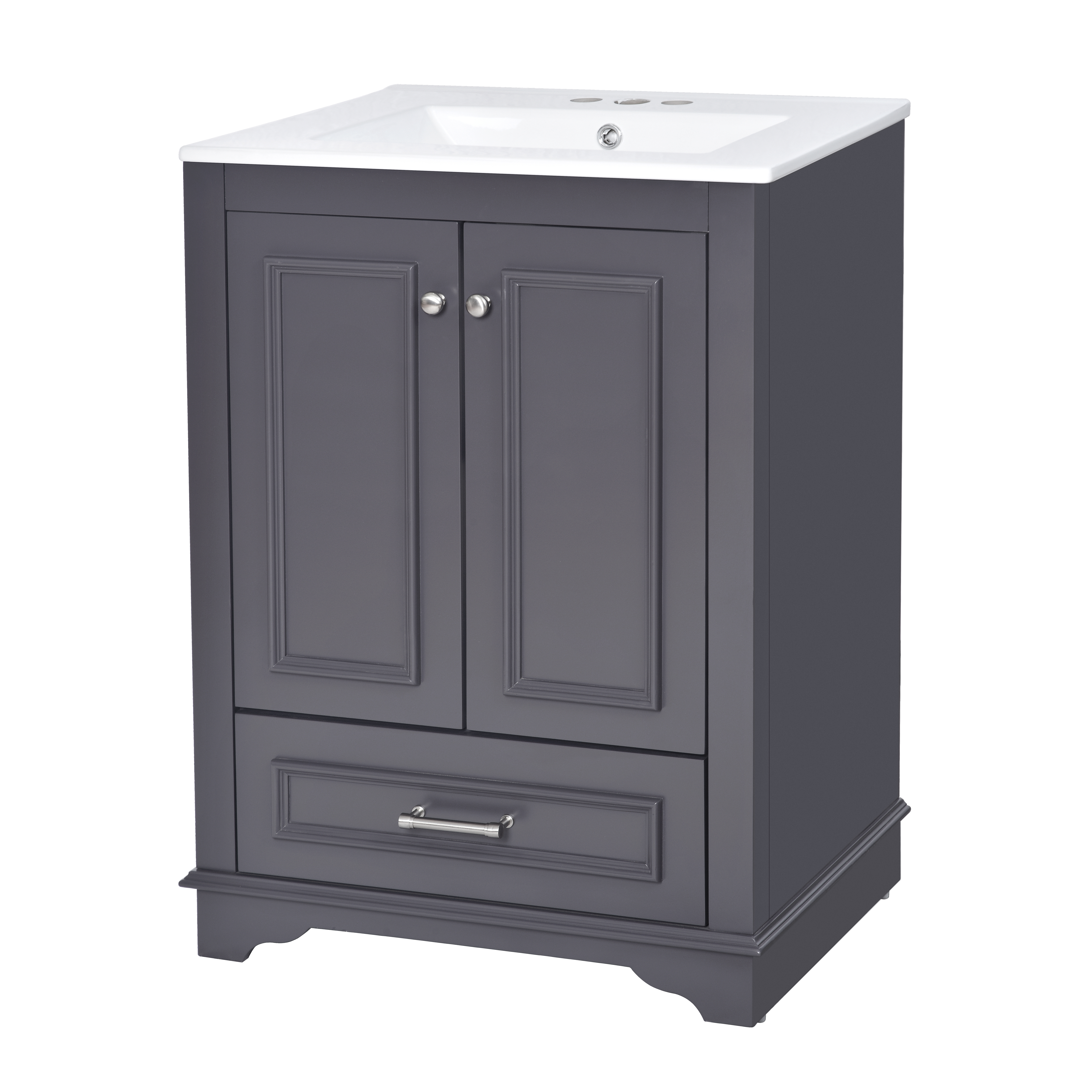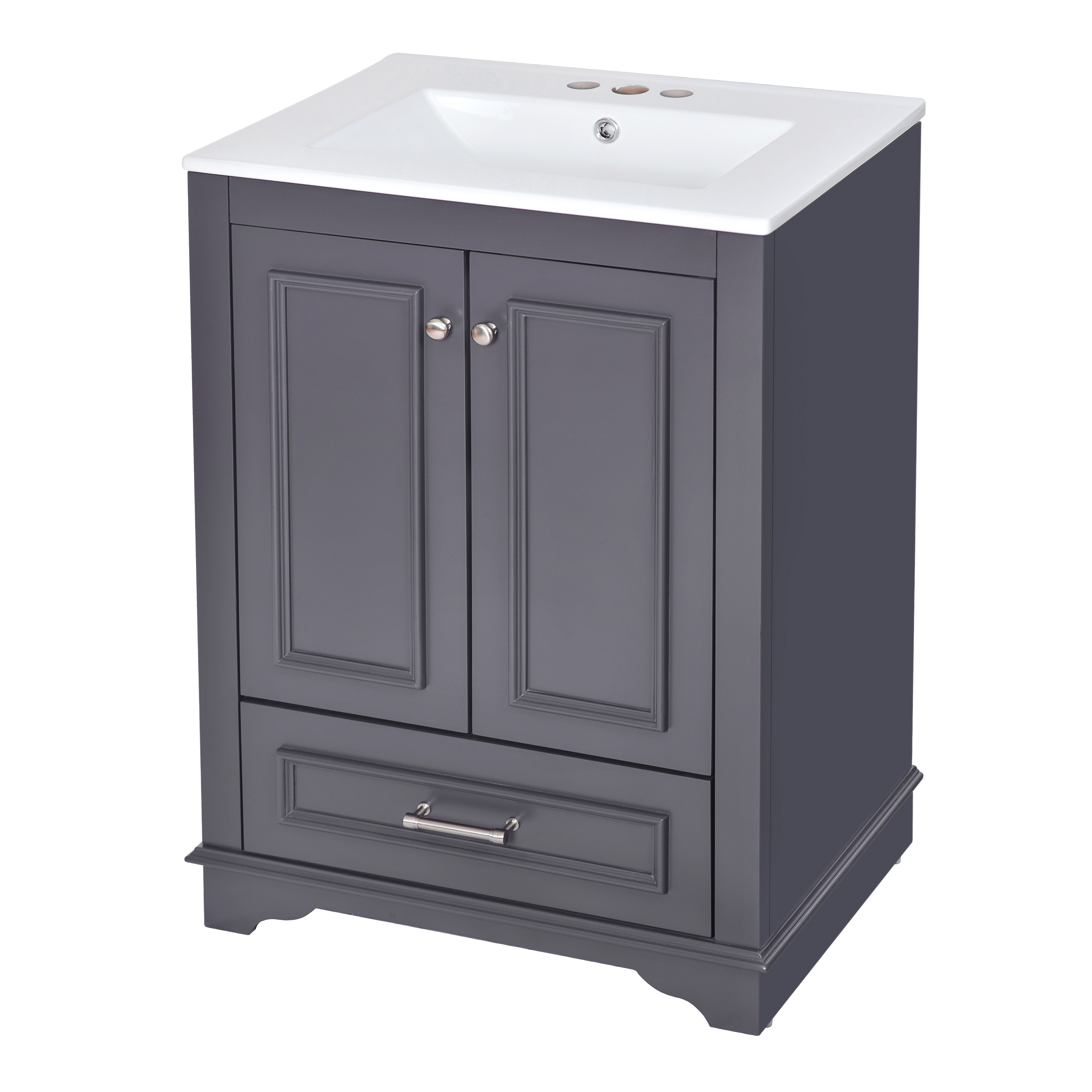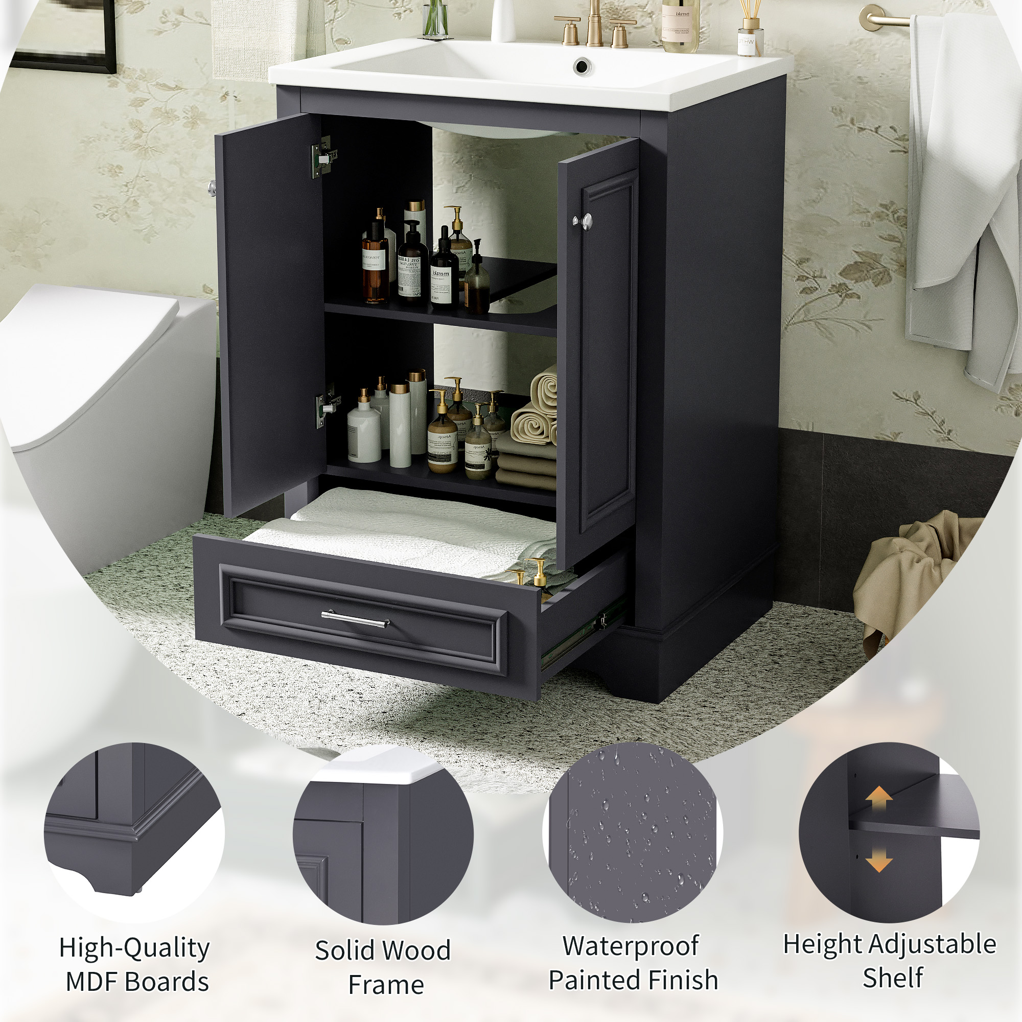 Product Name:24'' Bathroom Vanity with Ceramic Sink Combo, Modern Freestanding Storage Cabinet with Silver Handles, Soft Closing Doors