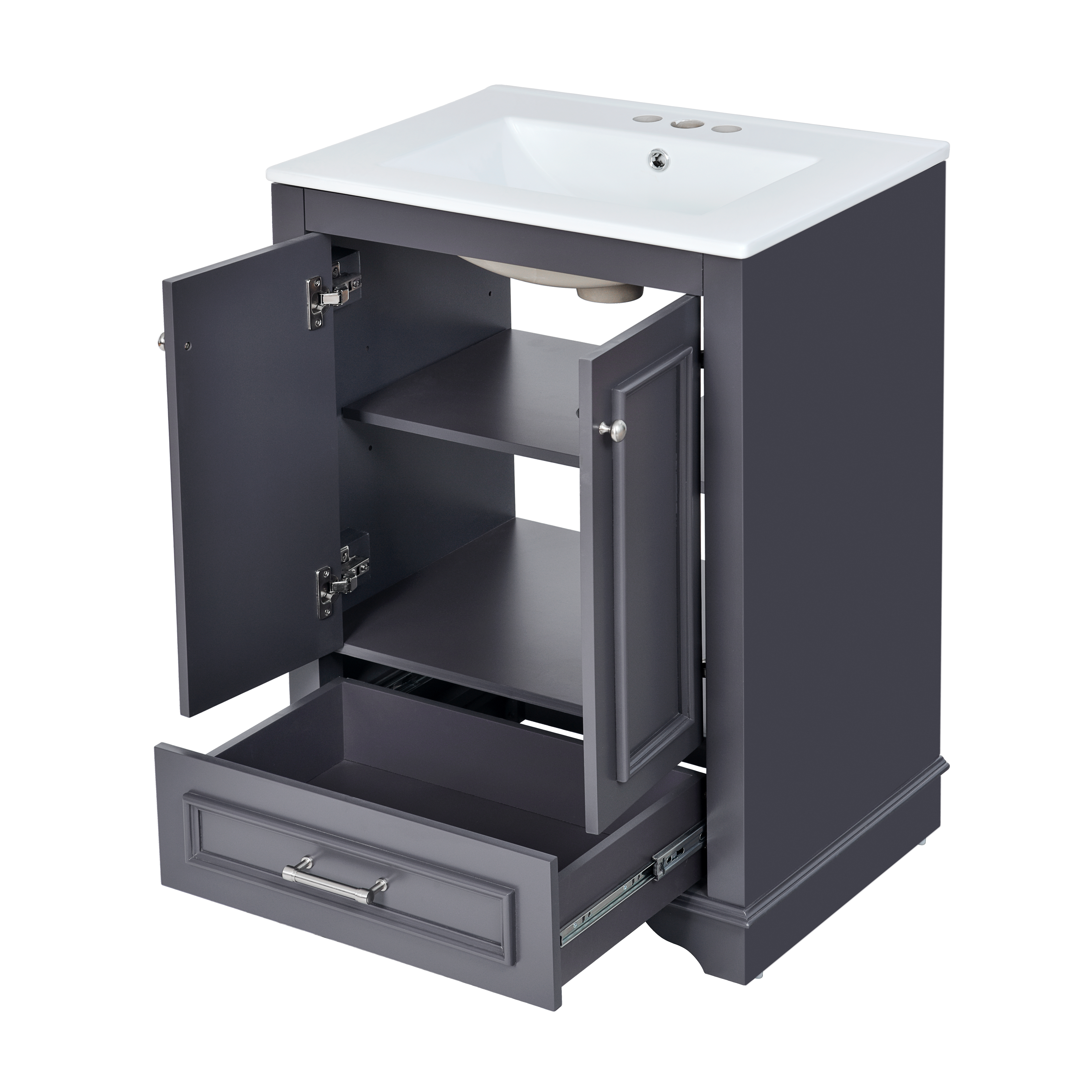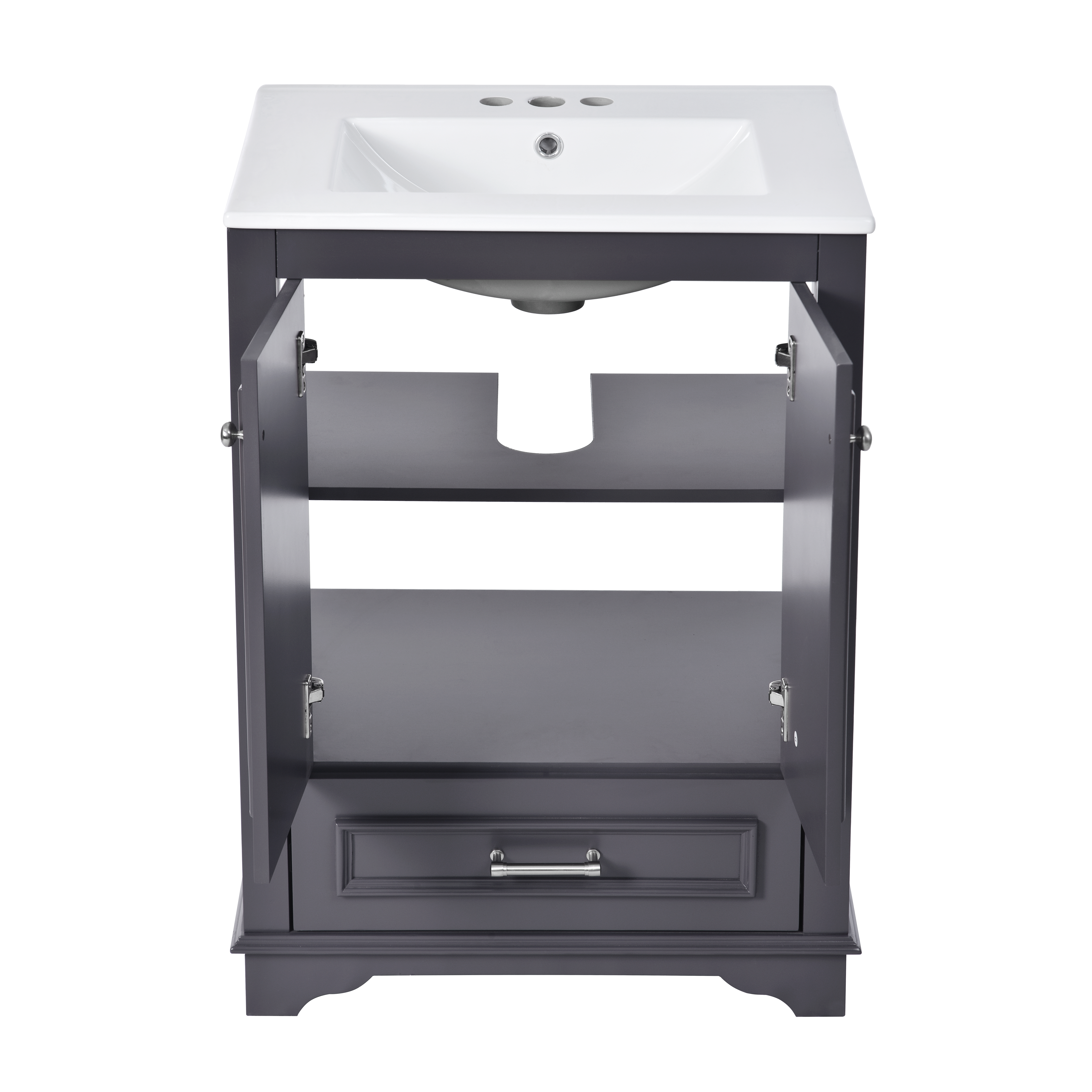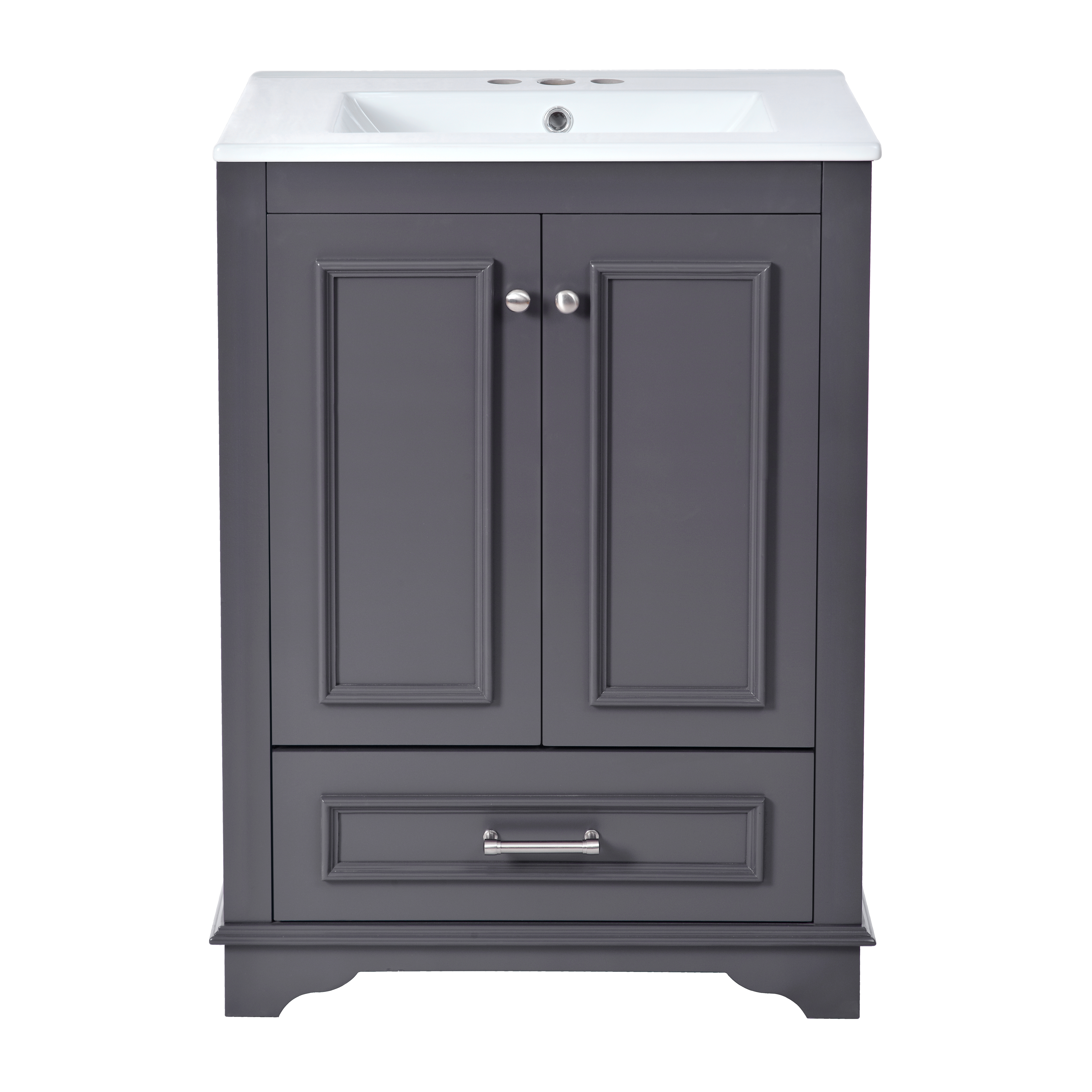 Product Name:24'' Bathroom Vanity with Ceramic Sink Combo, Modern Freestanding Storage Cabinet with Silver Handles, Soft Closing Doors