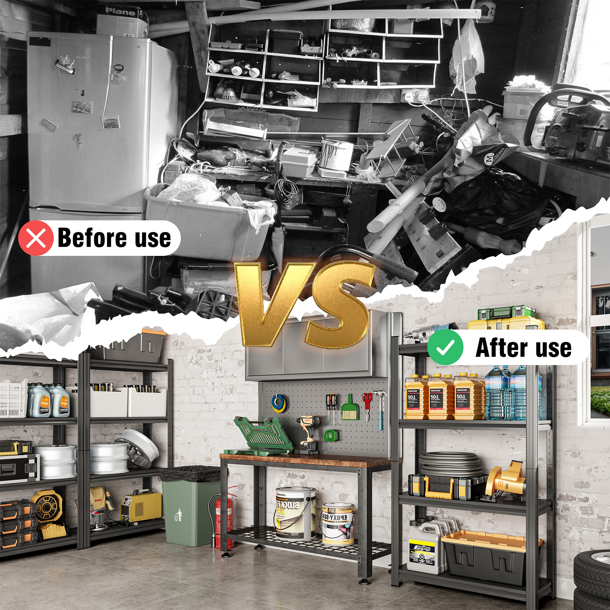 • 【Sturdy & Durable Design】 This storage rack is made of high-quality metal with reinforced plates, ensuring sturdiness and durability while improving stability. Each shelf supports up to 400 LBS, with a total weight capacity of 1600 LBS. The spacious design makes it more convenient to store items.