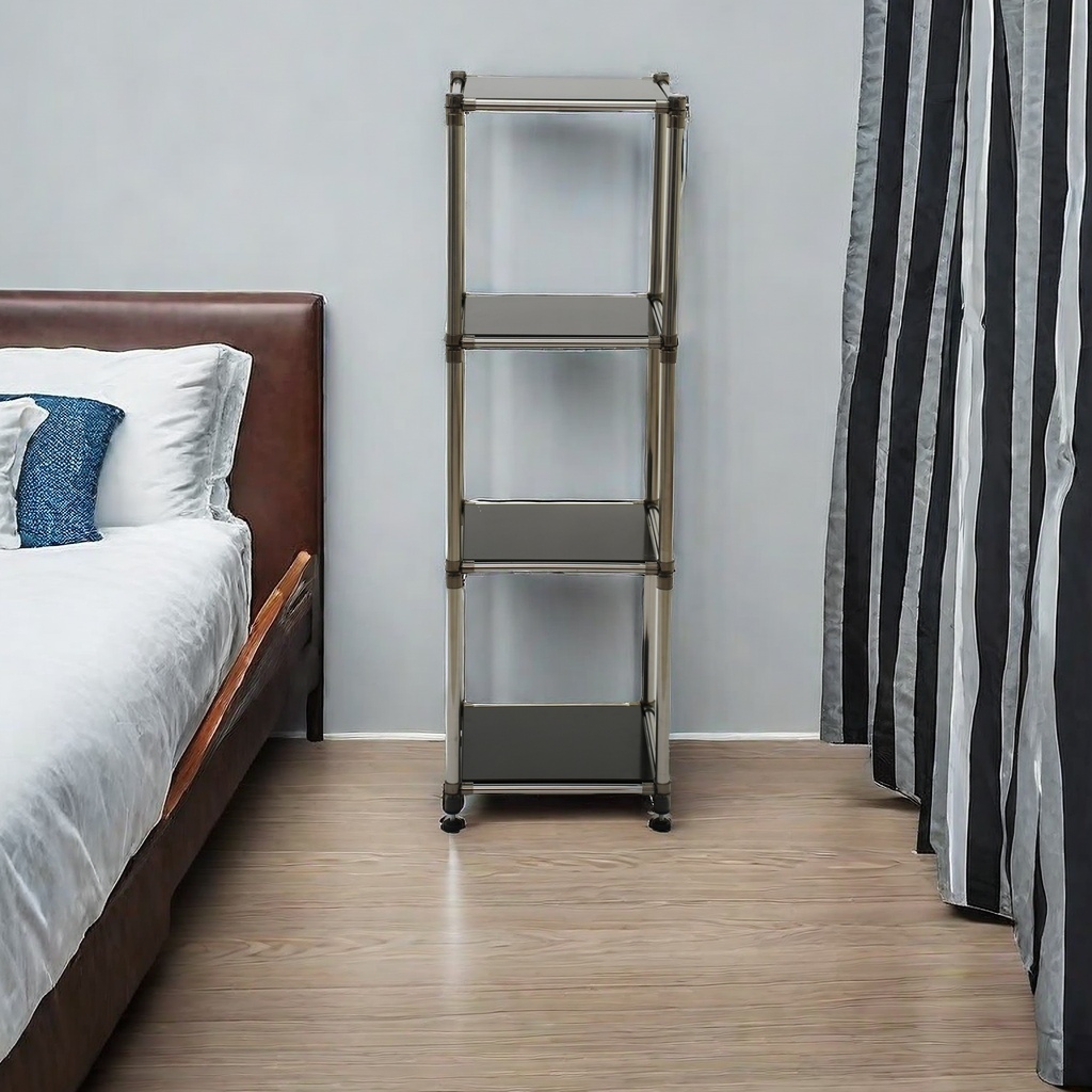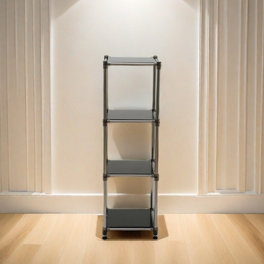 Product Name:Korean Black 4-Tier Heavy Duty Stainless steel Storage Shelving Unit, 100lbs/shelf (49"H x 14.9"W x 13.7"D) for Indoor/Outdoor Organization , Modular Rack, Extremely Durabl