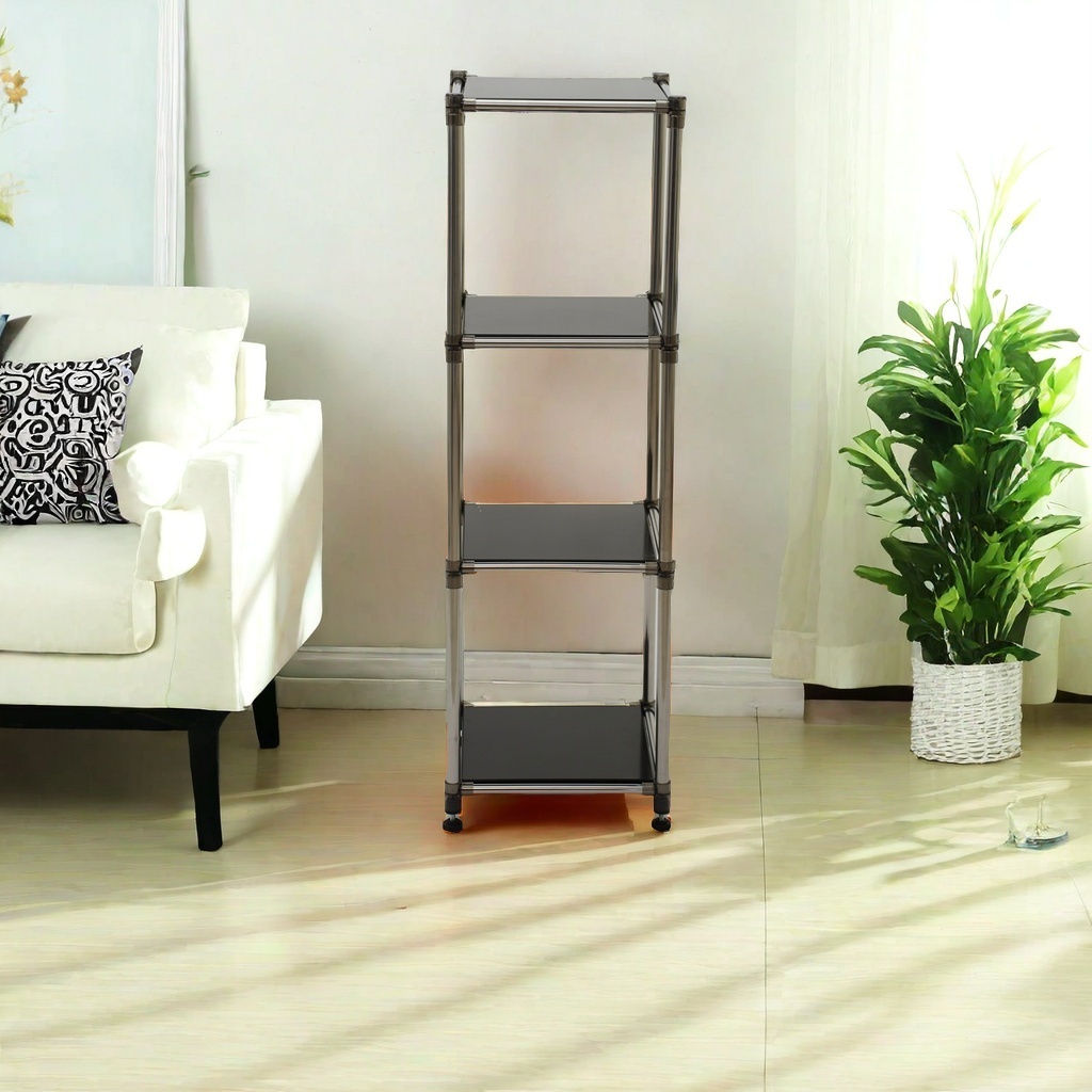 Home > Korean Black 4-Tier Heavy Duty Stainless Steel Storage Shelving Unit, 100lbs Shelf 49 H X 14.9 W X 13.7D For IndoorOutdoor Organization , Modular Rack